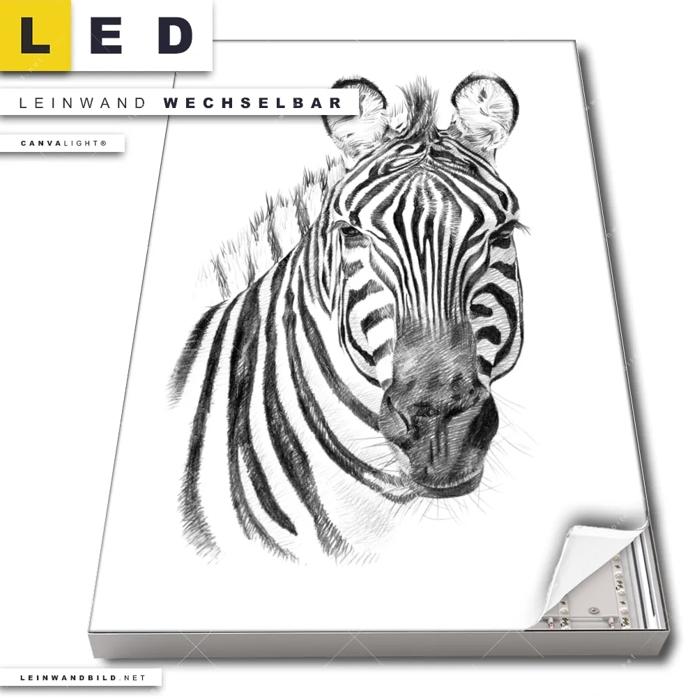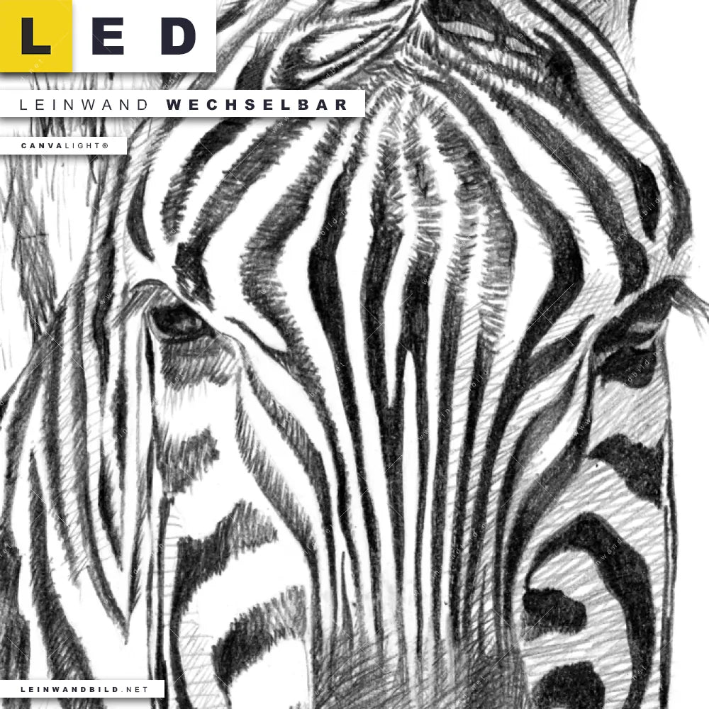 LED Leinwandbild Canvalight® TEX | Bleistiftzeichnung Zebra | Hochformat
