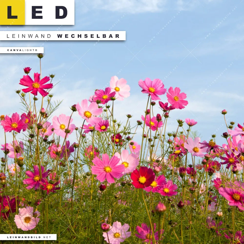 Du bist auf der Suche nach einem Landschaften, Blumen - Botanik LED Leinwandbild im Panorama-Format? Begriffe wie Natur, Wiese, Feld, Blumen, Blüten, Garten haben Dich auf der Suche nach Deinem neuen XXL LED Wandbild mit wechselbarer Leinwand inspiriert? Farben wie Grün, Pink, Rosa, Blau dürfen auf Deinem neuen extra breiten Leinwand-LED-Bild nicht fehlen und Leuchtbilder im Floral, Natürlich - Realistisch Stil passen perfekt zu Deinem Einrichtungsstil?