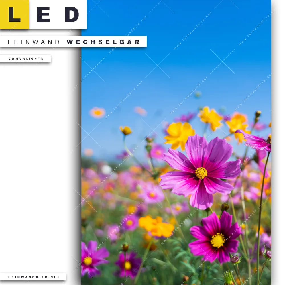 LED Leinwandbild Canvalight® TEX | Blumenwiese unter blauem Himmel | Hochformat