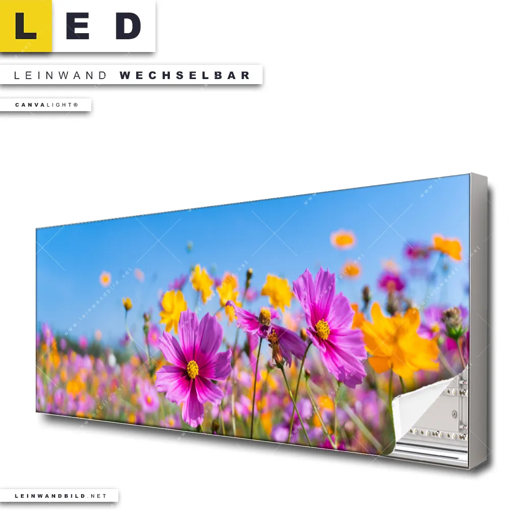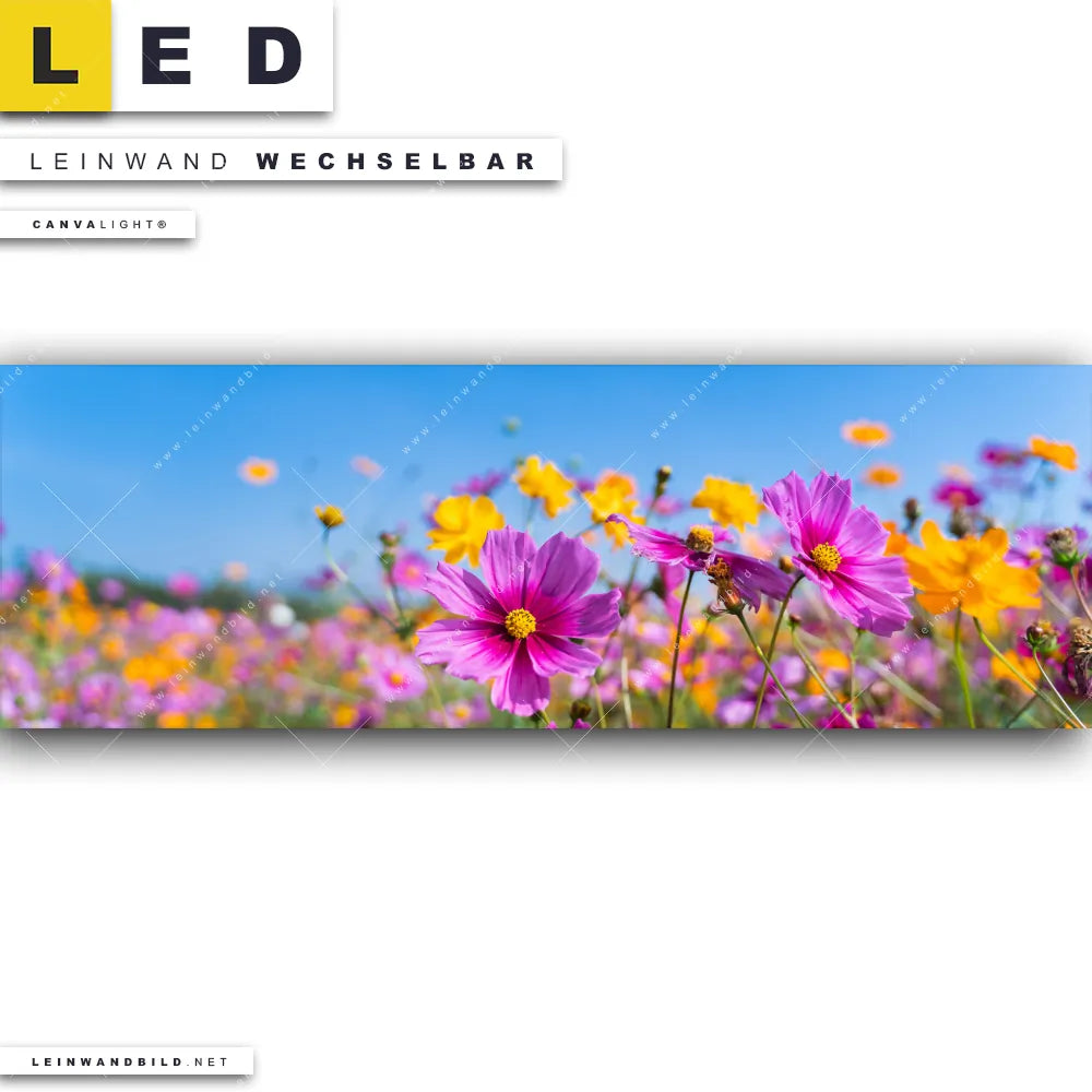 LED Leinwandbild Canvalight® TEX | Blumenwiese unter blauem Himmel | Panorama