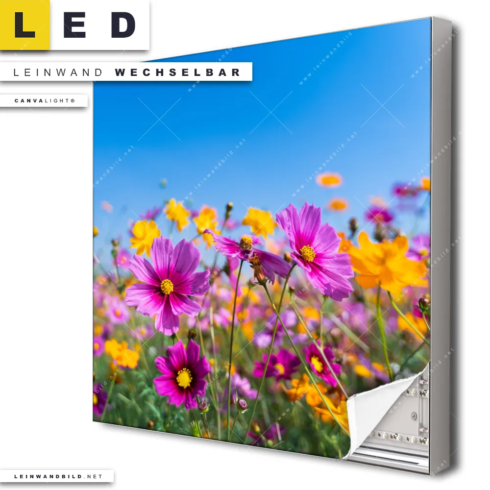 LED Leinwandbild Canvalight® TEX | Blumenwiese unter blauem Himmel | Quadrat