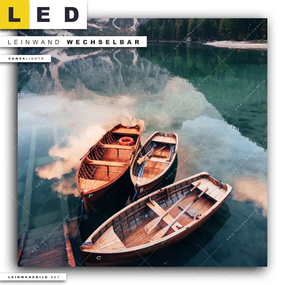 Du bist auf der Suche nach einem Landschaften LED Leinwandbild im Quadratischen Format? Begriffe wie Urlaub, Reisen, Pier, Steg, Wasser, Berge, Bergsee, See, Wasserspiegelung, Boot, Boote, Holzboot, Gebirge, Nebel, Natur haben Dich auf der Suche nach Deinem neuen XXL LED Wandbild mit wechselbarer Leinwand inspiriert? Farben wie Türkis, Mint, Braun, Beige, Grün dürfen auf Deinem neuen Leinwand-LED-Bild nicht fehlen und Leuchtbilder im Natürlich - Realistisch Stil passen perfekt zu Deinem Einrichtungsstil?