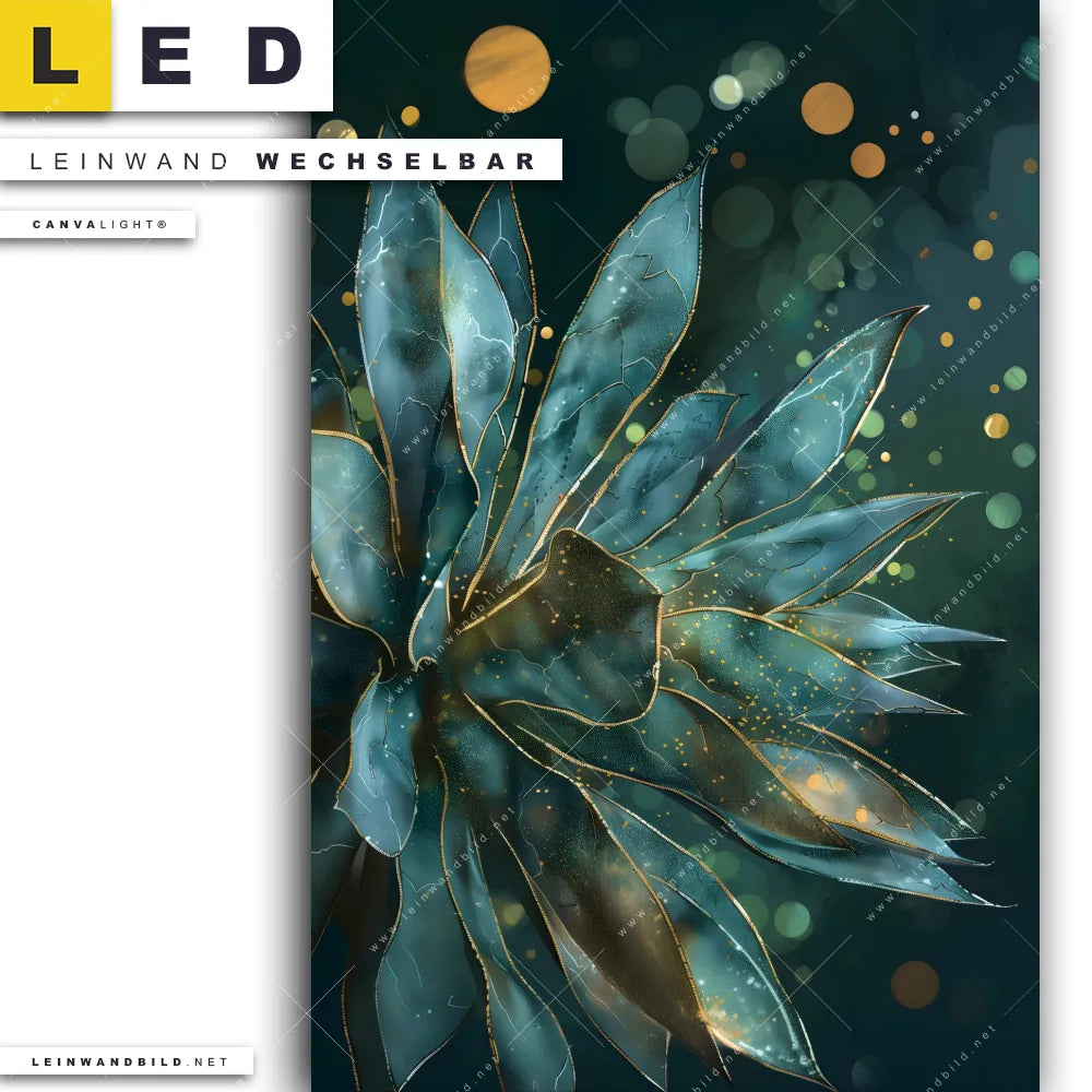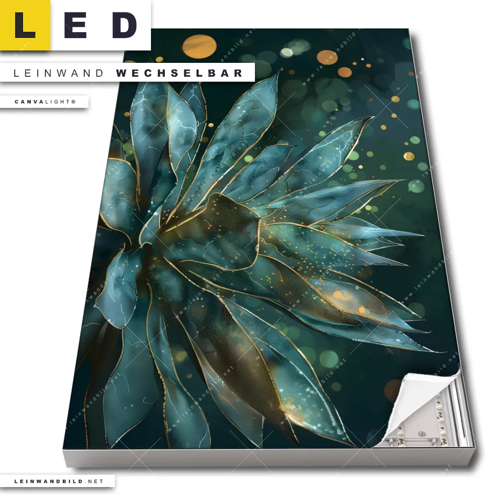 Du bist auf der Suche nach einem Blumen - Botanik LED Leinwandbild im Hochformat? Begriffe wie Blumen, Sukkulente, Kaktus, Pflanze, Natur, Blüten, Glitzer haben Dich auf der Suche nach Deinem neuen XXL LED Wandbild mit wechselbarer Leinwand inspiriert? Farben wie Grün, Gold, Türkis dürfen auf Deinem neuen Leinwand-LED-Bild nicht fehlen und Leuchtbilder im Floral, Abstrakt, Modern Art Stil passen perfekt zu Deinem Einrichtungsstil?