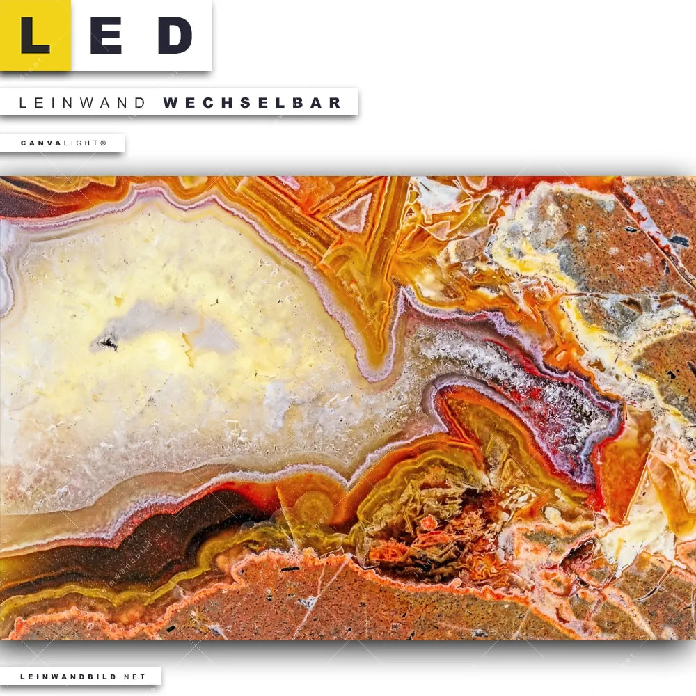 Du bist auf der Suche nach einem Muster - Texturen LED Leinwandbild im Querformat? Begriffe wie Edelstein, Achat, Kristall, Abstrakt, Querschnitt haben Dich auf der Suche nach Deinem neuen XXL LED Wandbild mit wechselbarer Leinwand inspiriert? Farben wie Weiss, Braun, Beige, Bunt, Gold, Ocker, Orange, Rot dürfen auf Deinem neuen breiten Leinwand-LED-Bild nicht fehlen und Leuchtbilder im Abstrakt, Modern Art, Natürlich - Realistisch Stil passen perfekt zu Deinem Einrichtungsstil?