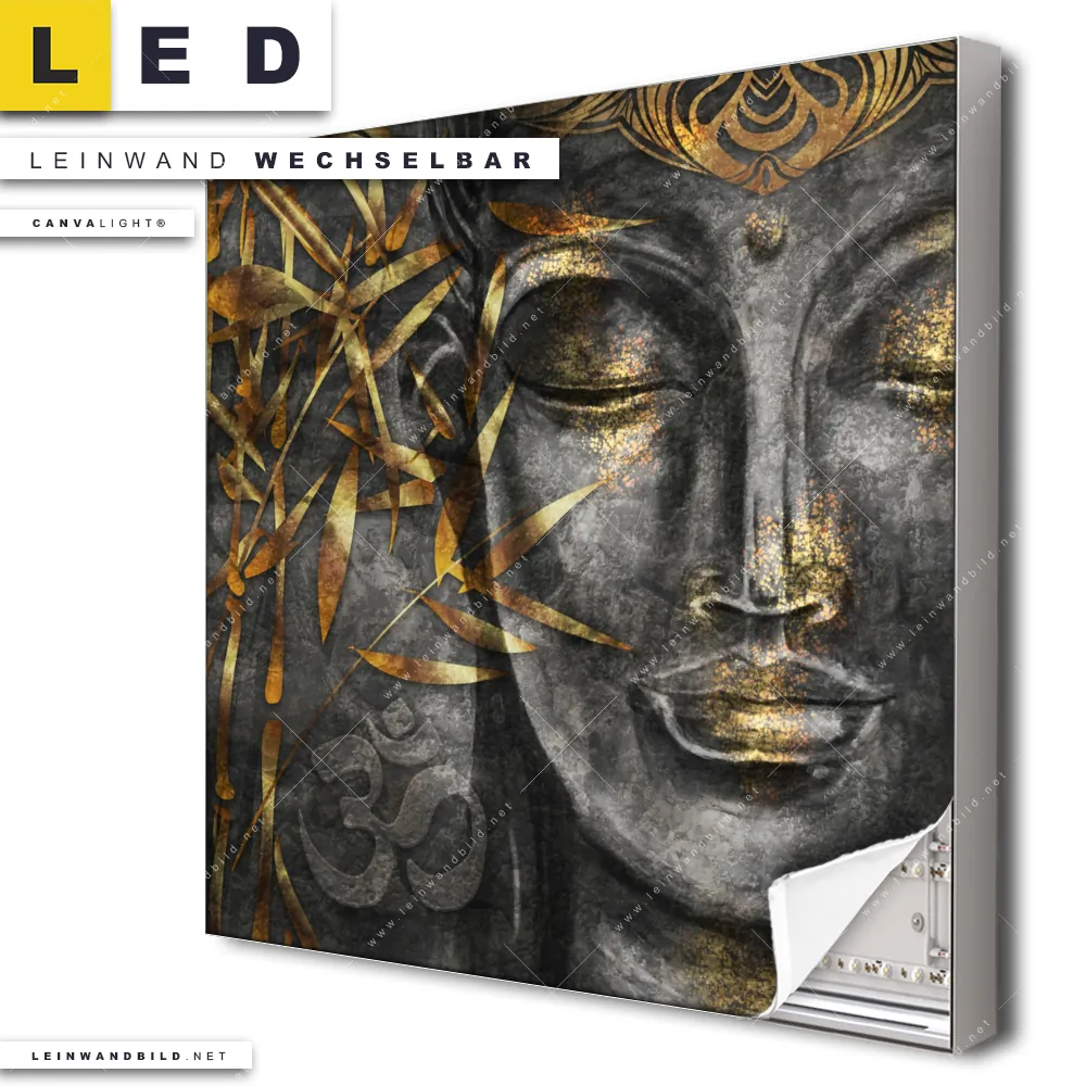 Du bist auf der Suche nach einem Buddha - Feng Shui LED Leinwandbild im Quadratischen Format? Begriffe wie Buddha, Buddhismus, Religion, Bambus, Meditation, Yoga haben Dich auf der Suche nach Deinem neuen XXL LED Wandbild mit wechselbarer Leinwand inspiriert? Farben wie Schwarz, Gold dürfen auf Deinem neuen Leinwand-LED-Bild nicht fehlen und Leuchtbilder im Mixed Media, Modern Art Stil passen perfekt zu Deinem Einrichtungsstil?
