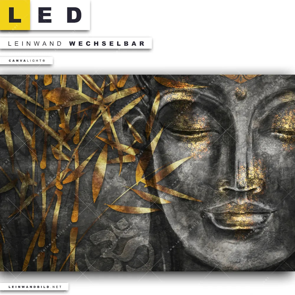 Du bist auf der Suche nach einem Buddha - Feng Shui LED Leinwandbild im Querformat? Begriffe wie Buddha, Buddhismus, Religion, Bambus, Meditation, Yoga haben Dich auf der Suche nach Deinem neuen XXL LED Wandbild mit wechselbarer Leinwand inspiriert? Farben wie Schwarz, Gold dürfen auf Deinem neuen breiten Leinwand-LED-Bild nicht fehlen und Leuchtbilder im Mixed Media, Modern Art Stil passen perfekt zu Deinem Einrichtungsstil?