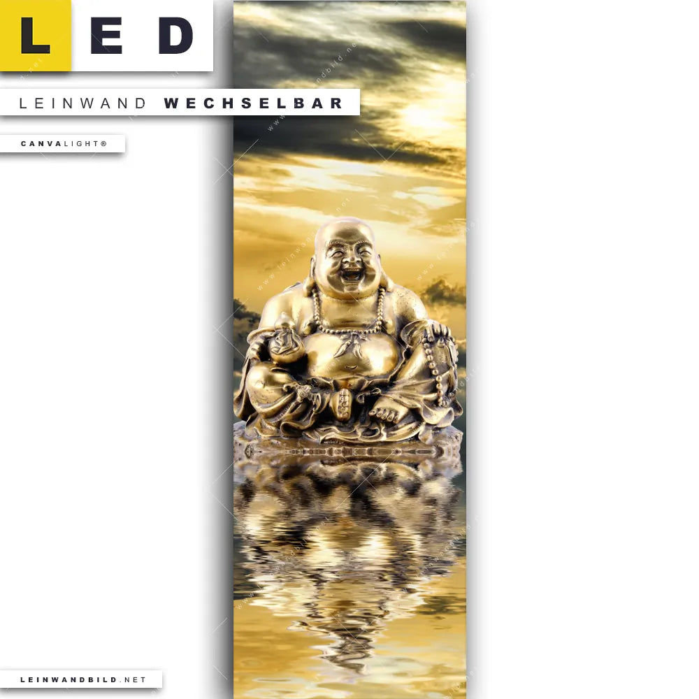 Du bist auf der Suche nach einem Buddha - Feng Shui LED Leinwandbild im Schmalen Format? Begriffe wie Buddha, Buddhismus, Religion, Feng Shui, Zen, Meditation, spirituell, heilig, Esoterik, Gott, Gesicht, Statue, Himmel, Wolken, Sonnenuntergang, Sonnenaufgang, Wasserspiegelung, Spiegelung haben Dich auf der Suche nach Deinem neuen XXL LED Wandbild mit wechselbarer Leinwand inspiriert? Farben wie Gold, Ocker, Orange, Blau dürfen auf Deinem neuen Leinwand-LED-Bild im Panorama-Hochformat nicht fehlen und Leuchtbilder im Mixed Media, Modern Art Stil passen perfekt zu Deinem Einrichtungsstil?