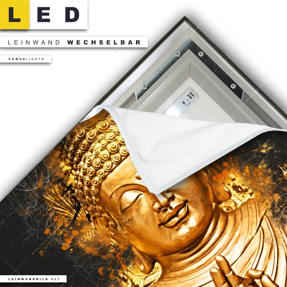 LED Leinwandbild Canvalight® TEX | Buddha Golden Splash | Quadrat