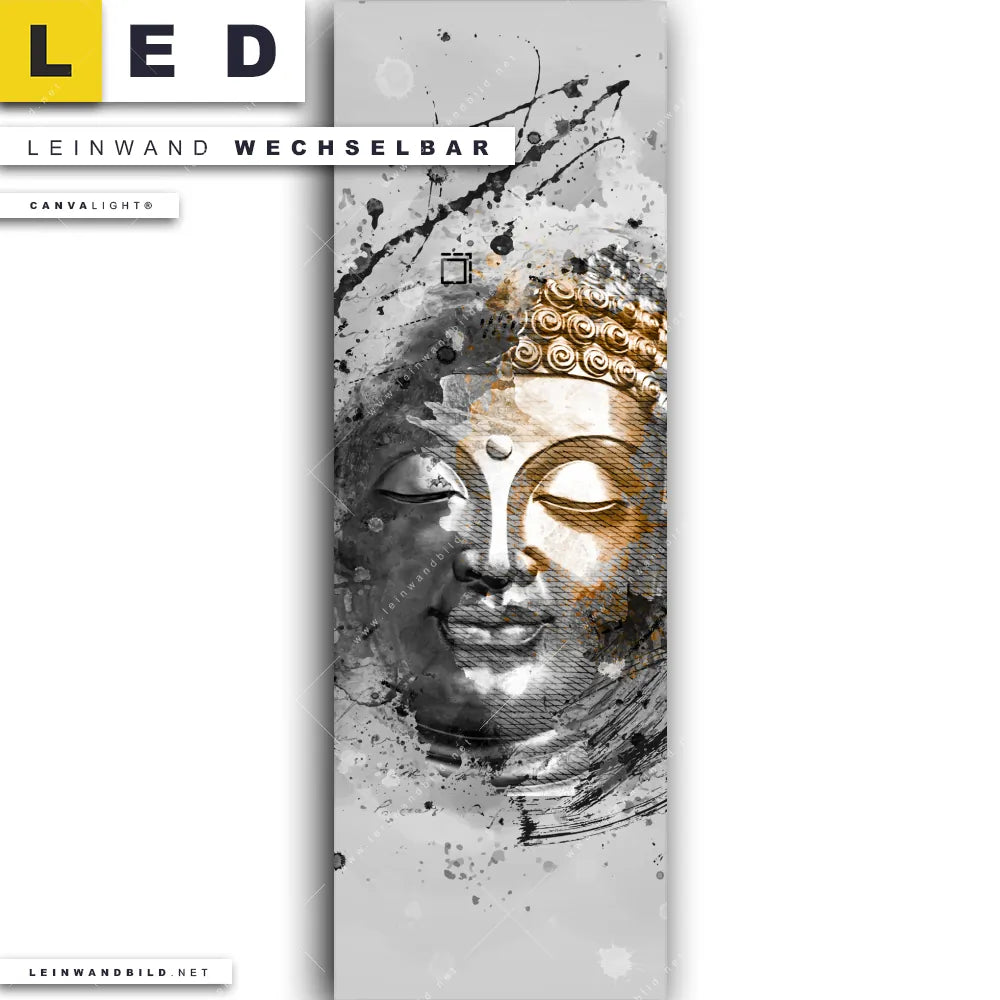 Du bist auf der Suche nach einem Buddha - Feng Shui LED Leinwandbild im Schmalen Format? Begriffe wie Feng Shui, Religion, Buddhismus, Buddha, Porträt, Grunge, Streetart, modern haben Dich auf der Suche nach Deinem neuen XXL LED Wandbild mit wechselbarer Leinwand inspiriert? Farben wie Silber, Gold dürfen auf Deinem neuen Leinwand-LED-Bild im Panorama-Hochformat nicht fehlen und Leuchtbilder im Abstrakt, Grunge, Mixed Media, Modern Art Stil passen perfekt zu Deinem Einrichtungsstil?