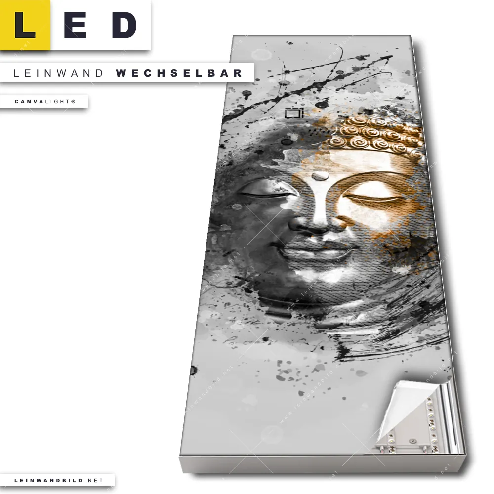 Du konfigurierst Dein individuelles LED Leinwandbild Canvalight® TEX | Buddha - Grunge-Stil | Schmal und wir produzieren es NEU für Dich. Unsere Buddha - Feng Shui LED Bilder mit wechselbarer Textil-Leinwand sind KEINE Lagerware. Du bist Dir unsicher, welches Motiv oder Format das richtige für dein individuelles Canvalight® Leuchtbild ist, dann helfen wir dir gerne weiter und beraten dich!