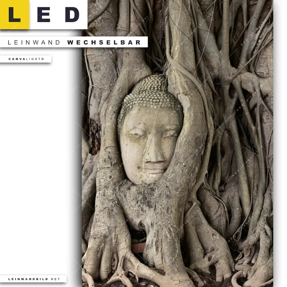 Du bist auf der Suche nach einem Buddha - Feng Shui LED Leinwandbild im Hochformat? Begriffe wie Buddha, Buddhismus, Religion, Feng Shui, Zen, Meditation, spirituell, heilig, Esoterik, Gott, Gesicht, Statue, Wurzeln, Baum haben Dich auf der Suche nach Deinem neuen XXL LED Wandbild mit wechselbarer Leinwand inspiriert? Farben wie Beige, Braun dürfen auf Deinem neuen Leinwand-LED-Bild nicht fehlen und Leuchtbilder im Modern Art, Natürlich - Realistisch Stil passen perfekt zu Deinem Einrichtungsstil?