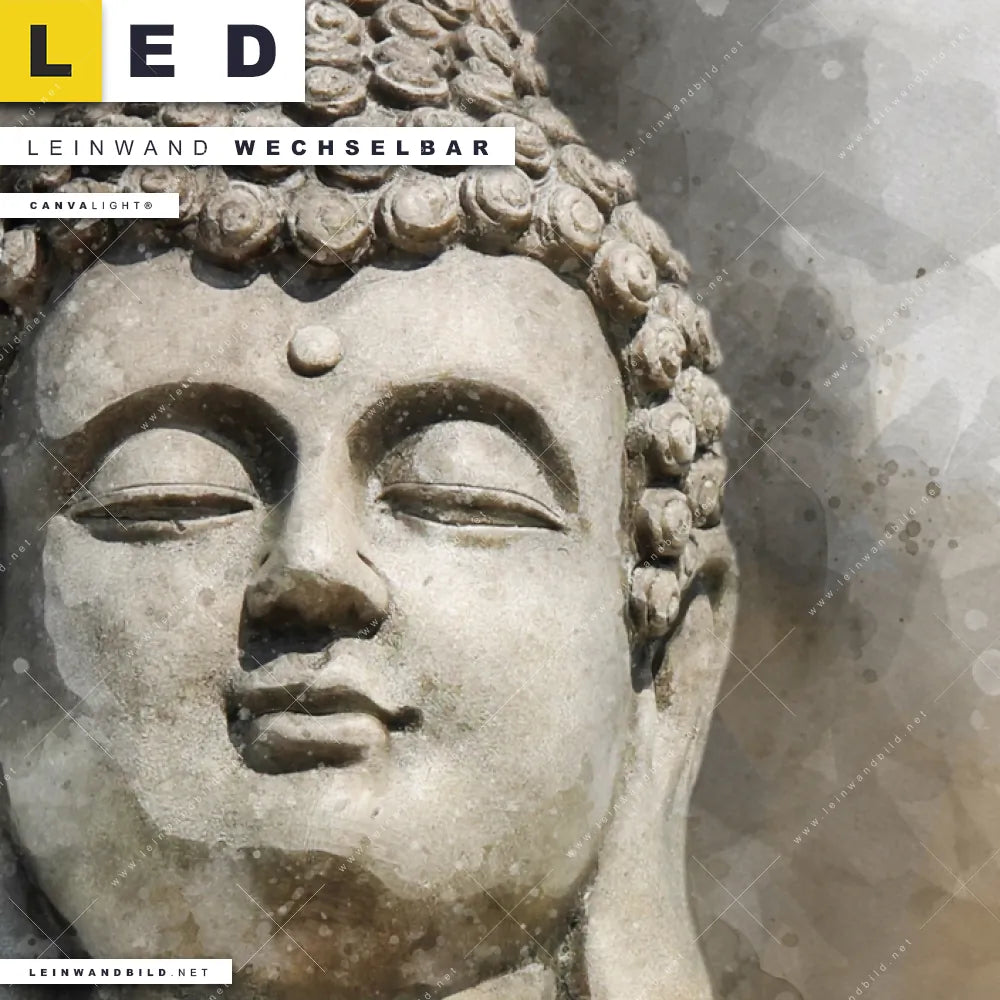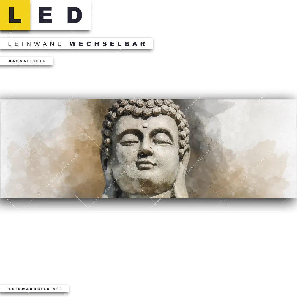Du bist auf der Suche nach einem Buddha - Feng Shui LED Leinwandbild im Panorama-Format? Begriffe wie Buddha, Buddhismus, Religion, Feng Shui, Zen, Meditation, spirituell, heilig, Esoterik, Gott, Gesicht, Statue haben Dich auf der Suche nach Deinem neuen XXL LED Wandbild mit wechselbarer Leinwand inspiriert? Farben wie Beige, Weiss dürfen auf Deinem neuen extra breiten Leinwand-LED-Bild nicht fehlen und Leuchtbilder im Mixed Media, Modern Art Stil passen perfekt zu Deinem Einrichtungsstil?