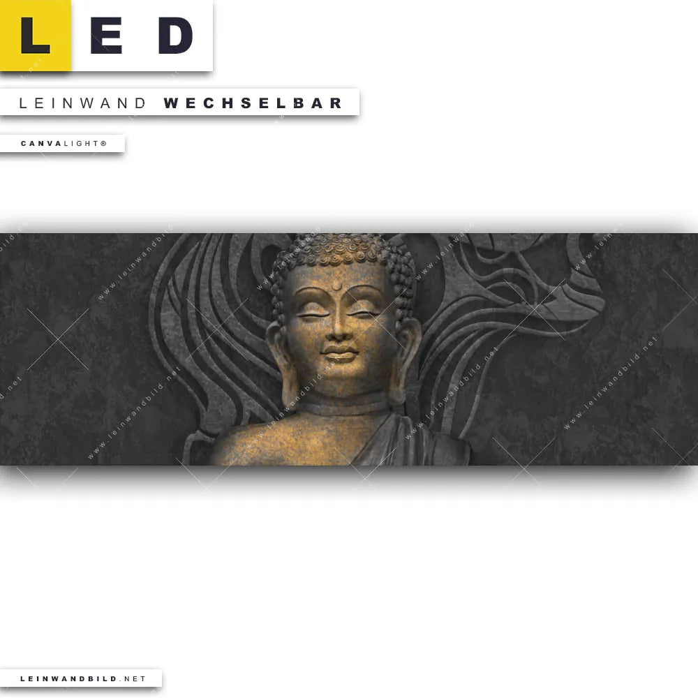 Du bist auf der Suche nach einem Buddha - Feng Shui LED Leinwandbild im Panorama-Format? Begriffe wie Buddha, Buddhismus, Religion, Feng Shui, Zen, Meditation, Lotus Pose, spirituell, Gott haben Dich auf der Suche nach Deinem neuen XXL LED Wandbild mit wechselbarer Leinwand inspiriert? Farben wie Schwarz, Gold, Braun dürfen auf Deinem neuen extra breiten Leinwand-LED-Bild nicht fehlen und Leuchtbilder im Modern Art Stil passen perfekt zu Deinem Einrichtungsstil?
