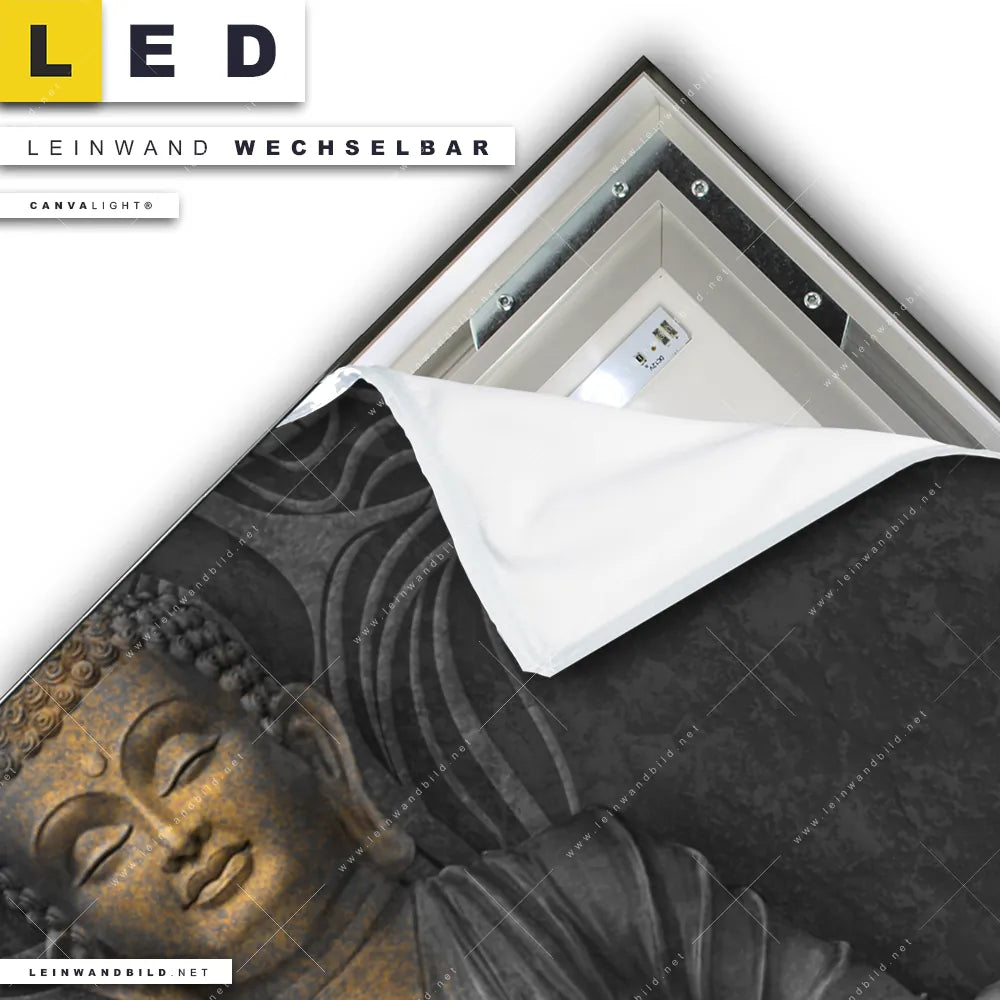 Du konfigurierst Dein individuelles LED Leinwandbild Canvalight® TEX | Buddha in Lotus Pose | Querformat und wir produzieren es NEU für Dich. Unsere Buddha - Feng Shui LED Bilder mit wechselbarer Textil-Leinwand sind KEINE Lagerware. Du bist Dir unsicher, welches Motiv oder Format das richtige für dein individuelles Canvalight® Leuchtbild ist, dann helfen wir dir gerne weiter und beraten dich!