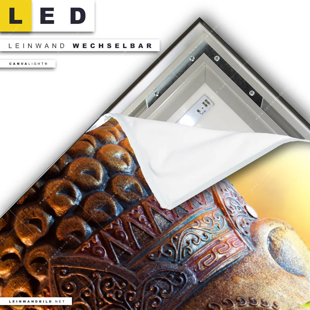 Du konfigurierst Dein individuelles LED Leinwandbild Canvalight® TEX | Buddha Kopf & Seerose | Hochformat und wir produzieren es NEU für Dich. Unsere Buddha - Feng Shui LED Bilder mit wechselbarer Textil-Leinwand sind KEINE Lagerware. Du bist Dir unsicher, welches Motiv oder Format das richtige für dein individuelles Canvalight® Leuchtbild ist, dann helfen wir dir gerne weiter und beraten dich!