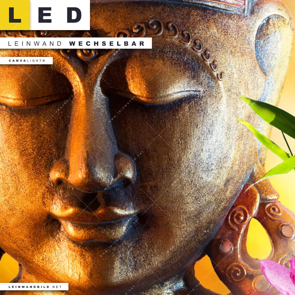 LED Leinwandbild Canvalight® TEX | Buddha Kopf & Seerose | Hochformat