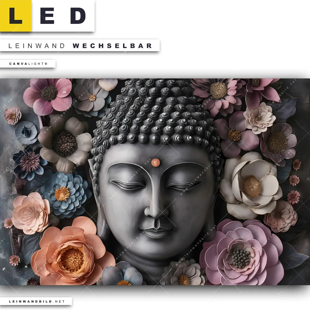 Du bist auf der Suche nach einem Buddha - Feng Shui, Blumen - Botanik LED Leinwandbild im Querformat? Begriffe wie Buddha, Buddhismus, Religion, Meditation, Blumen, Porträt, Spirituell, Statue haben Dich auf der Suche nach Deinem neuen XXL LED Wandbild mit wechselbarer Leinwand inspiriert? Farben wie Pink, Rosa, Grau dürfen auf Deinem neuen breiten Leinwand-LED-Bild nicht fehlen und Leuchtbilder im Modern Art, Mixed Media, Floral Stil passen perfekt zu Deinem Einrichtungsstil?