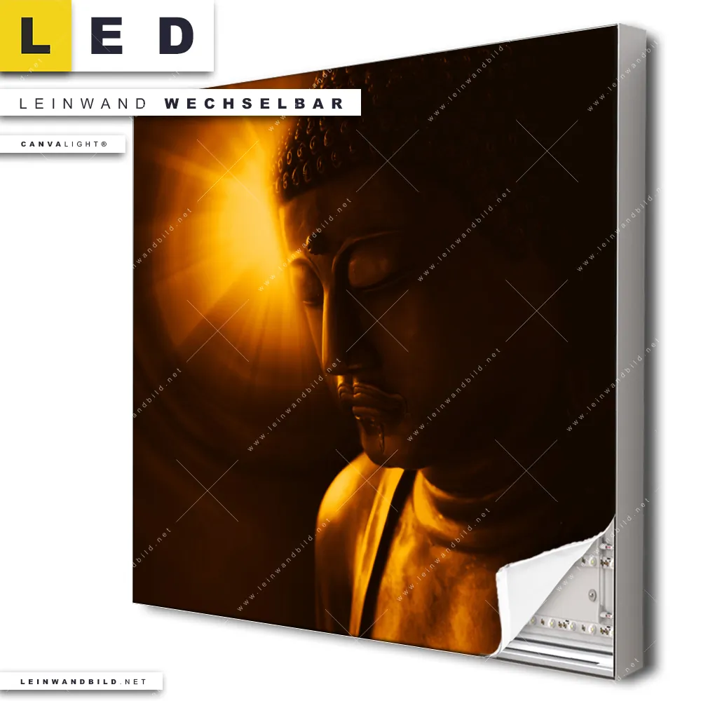 Du konfigurierst Dein individuelles LED Leinwandbild Canvalight® TEX | Buddha - Licht der Weisheit | Quadrat und wir produzieren es NEU für Dich. Unsere Buddha - Feng Shui LED Bilder mit wechselbarer Textil-Leinwand sind KEINE Lagerware. Du bist Dir unsicher, welches Motiv oder Format das richtige für dein individuelles Canvalight® Leuchtbild ist, dann helfen wir dir gerne weiter und beraten dich!