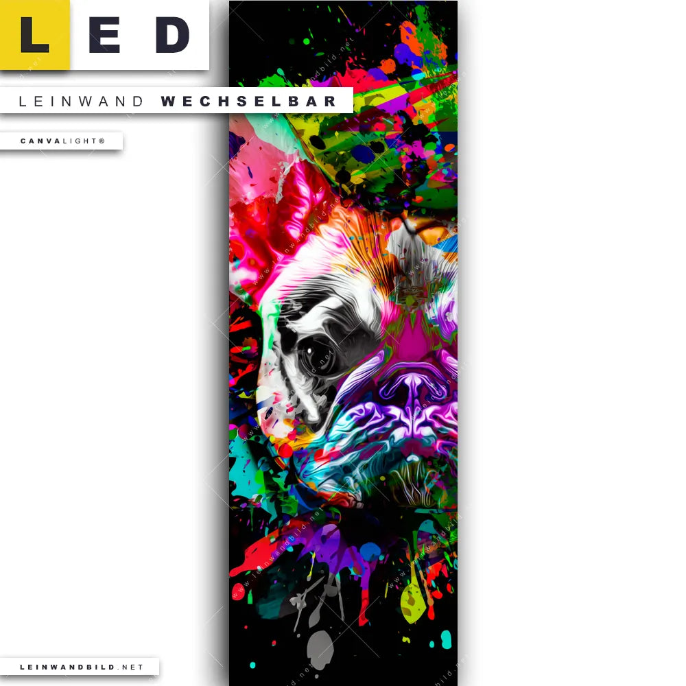LED Leinwandbild Canvalight® TEX | Bunte Bulldogge Schwarz | Schmal