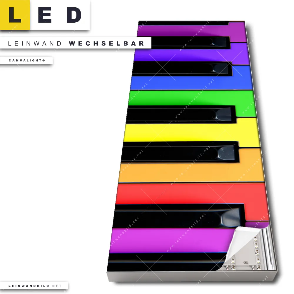 LED Leinwandbild Canvalight® TEX | Bunte Klaviertasten | Schmal