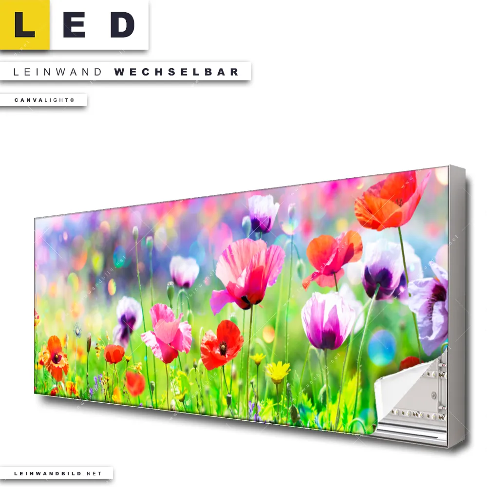 LED Leinwandbild Canvalight® TEX | Bunte Mohnblumen | Panorama