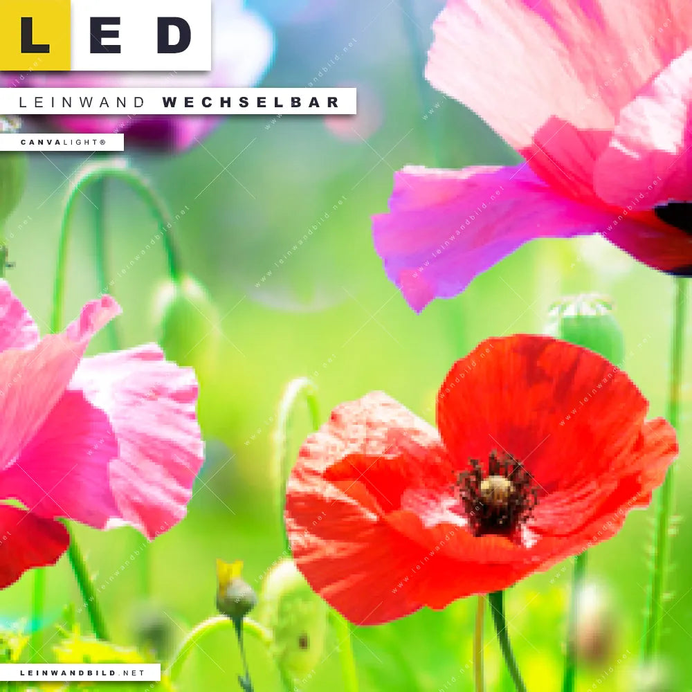 Du bist auf der Suche nach einem Landschaften, Blumen - Botanik LED Leinwandbild im Panorama-Format? Begriffe wie Blume, Botanik, Pflanze, Natur, Mohn, Mohnblume, Wiese, Feld, Blüte, Blumen haben Dich auf der Suche nach Deinem neuen XXL LED Wandbild mit wechselbarer Leinwand inspiriert? Farben wie Grün, Rot, Pink, Lila dürfen auf Deinem neuen extra breiten Leinwand-LED-Bild nicht fehlen und Leuchtbilder im Floral, Natürlich - Realistisch Stil passen perfekt zu Deinem Einrichtungsstil?