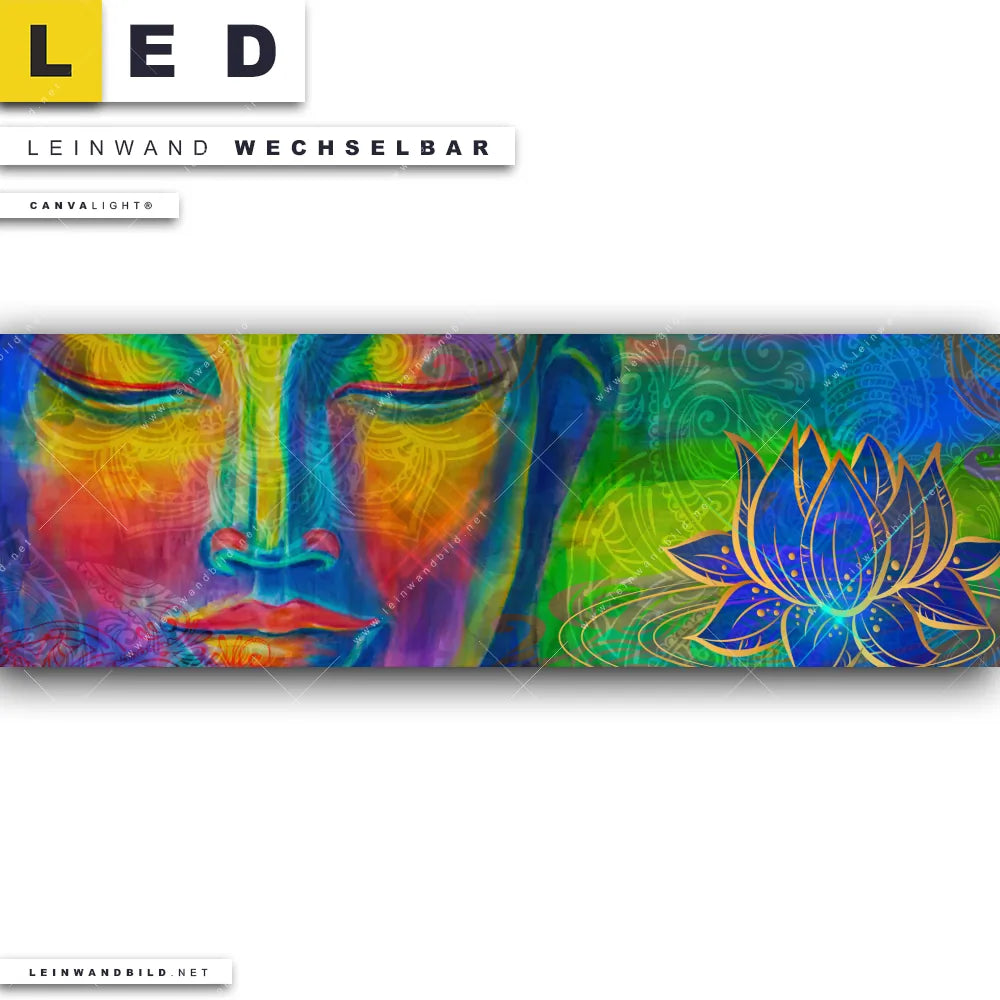 LED Leinwandbild Canvalight® TEX | Bunter Buddha No.2 | Panorama