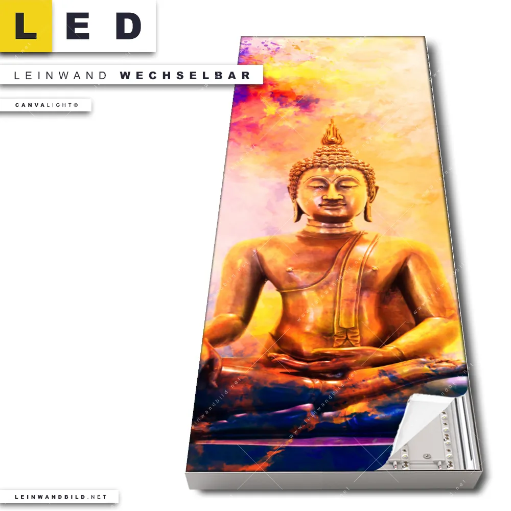 LED Leinwandbild Canvalight® TEX | Bunter Buddha No.3 | Schmal