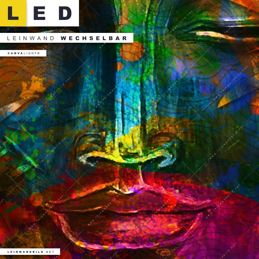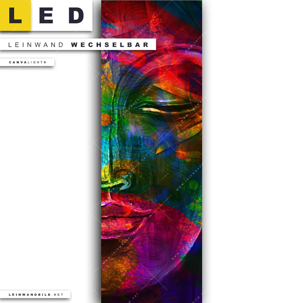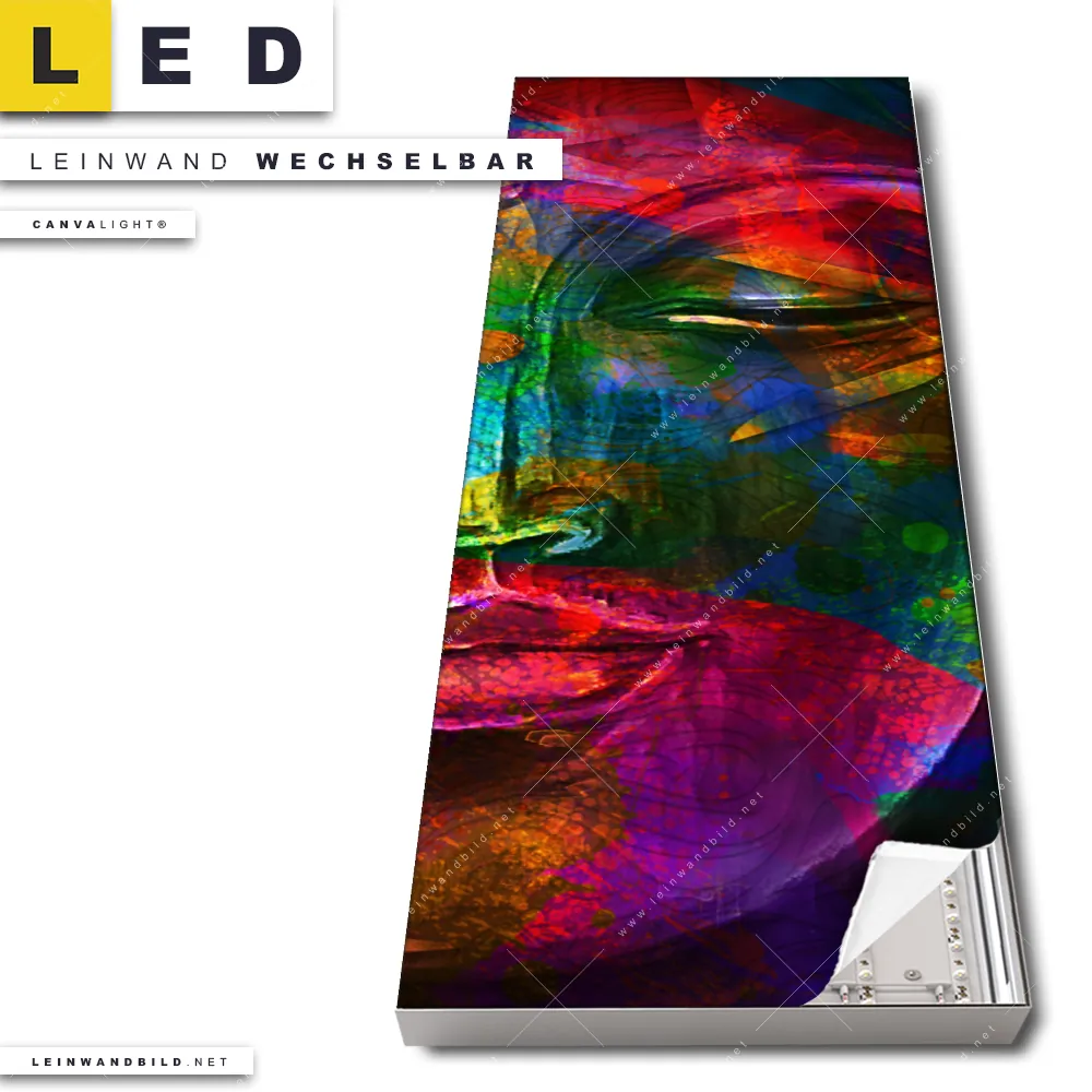 LED Leinwandbild Canvalight® TEX | Bunter Buddha | Schmal