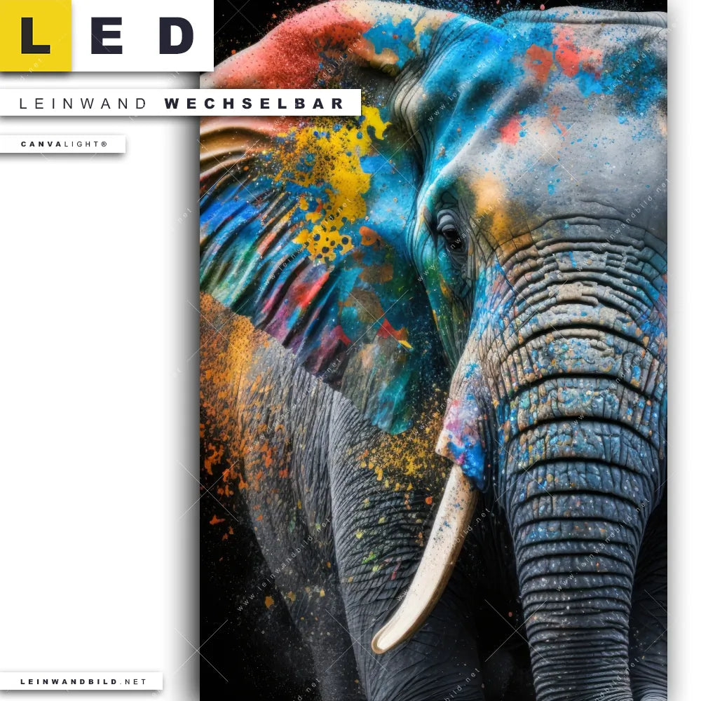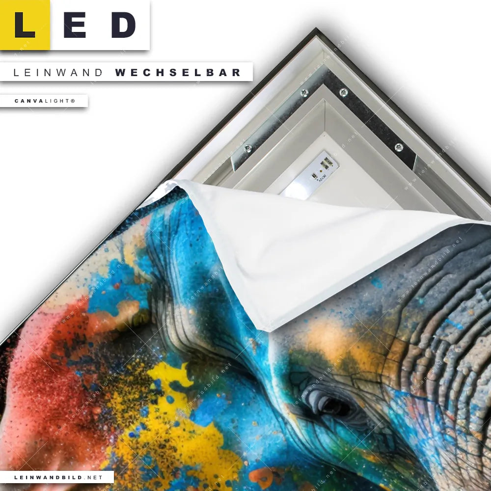 LED Leinwandbild Canvalight® TEX | Bunter Elefant | Hochformat