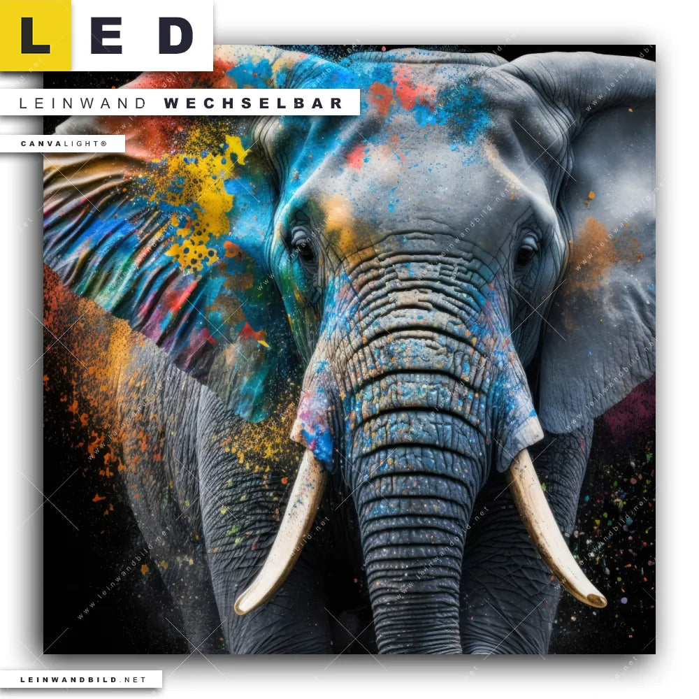 Du bist auf der Suche nach einem Tierwelt LED Leinwandbild im Quadratischen Format? Begriffe wie Elefant, Afrika, Big Five, Dickhäuter, Stoßzahn, Farbspritzer, Farbwolke, Dschungel haben Dich auf der Suche nach Deinem neuen XXL LED Wandbild mit wechselbarer Leinwand inspiriert? Farben wie Bunt dürfen auf Deinem neuen Leinwand-LED-Bild nicht fehlen und Leuchtbilder im Modern Art, Pop Art Stil passen perfekt zu Deinem Einrichtungsstil?