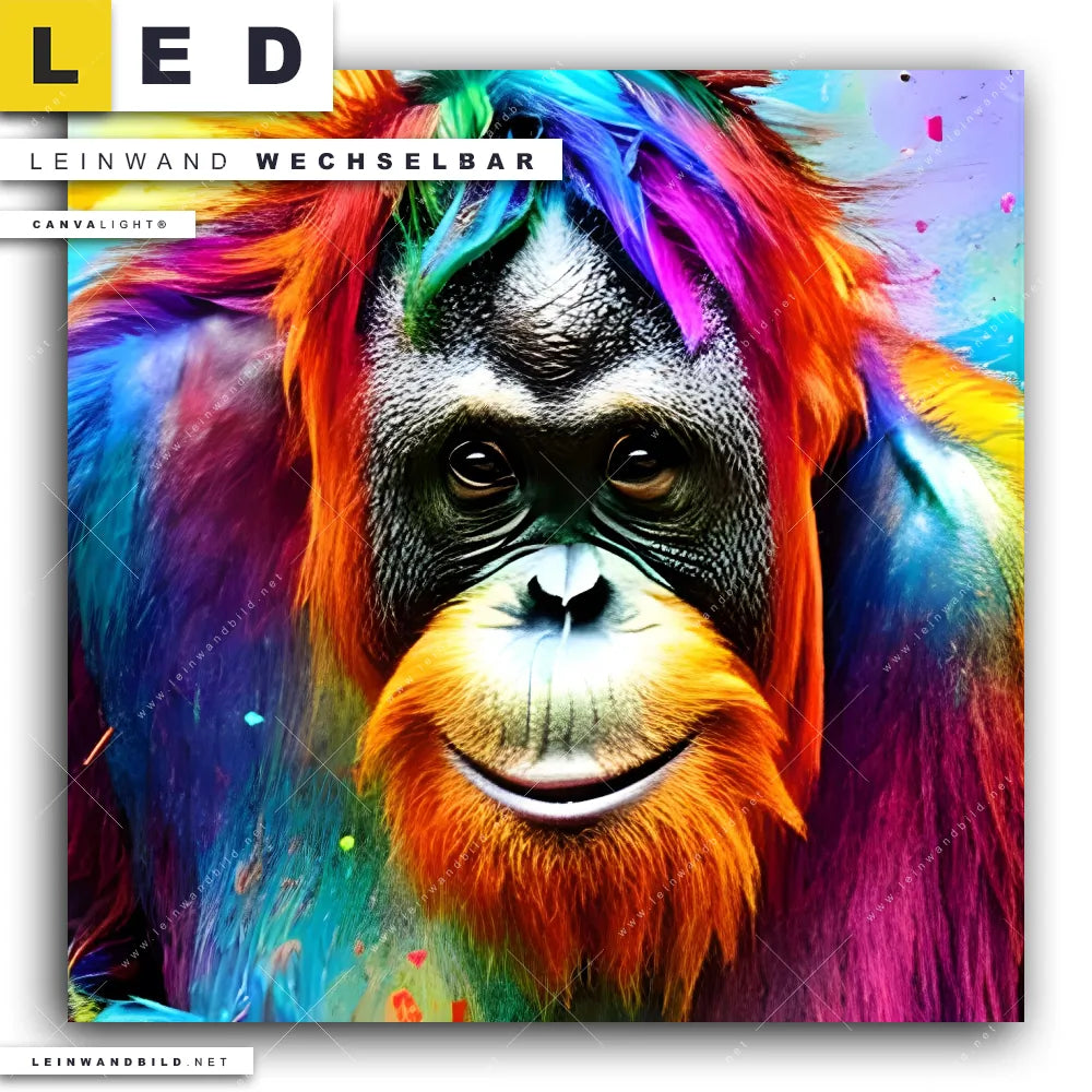Du bist auf der Suche nach einem Tierwelt LED Leinwandbild im Quadratischen Format? Begriffe wie Tier, Affe, Monkey, Farbe, Farbspritzer, Orang-Utan, Menschenaffe haben Dich auf der Suche nach Deinem neuen XXL LED Wandbild mit wechselbarer Leinwand inspiriert? Farben wie Bunt dürfen auf Deinem neuen Leinwand-LED-Bild nicht fehlen und Leuchtbilder im Abstrakt, Modern Art, Pop Art Stil passen perfekt zu Deinem Einrichtungsstil?