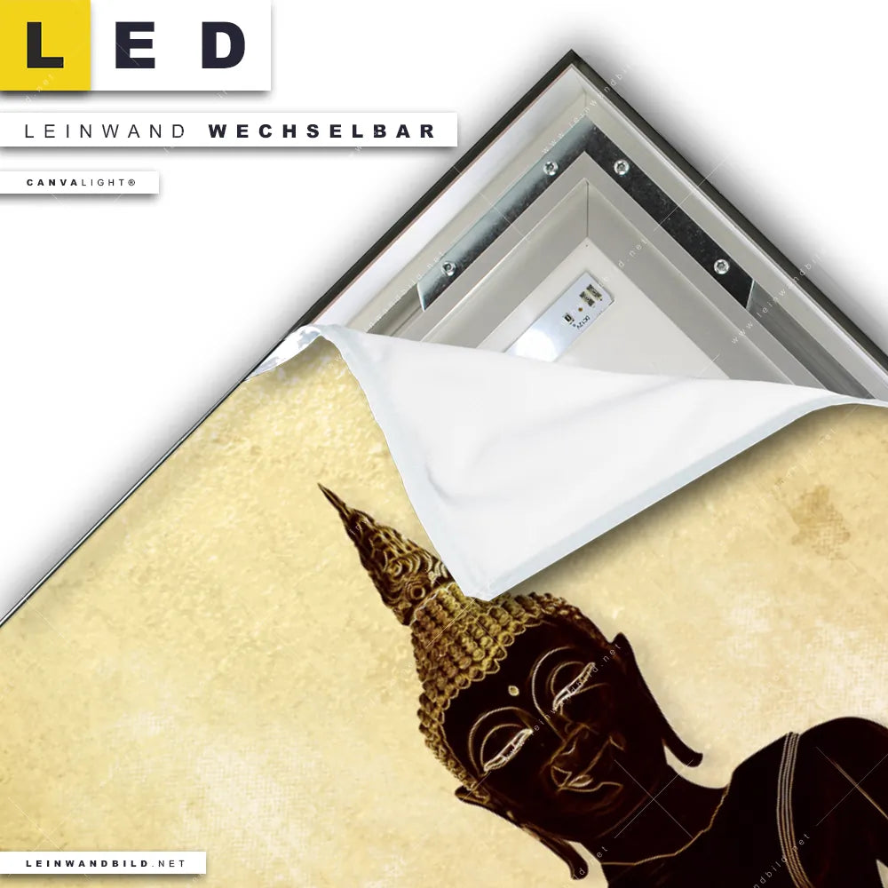 LED Leinwandbild Canvalight® TEX | Dark Buddha | Hochformat