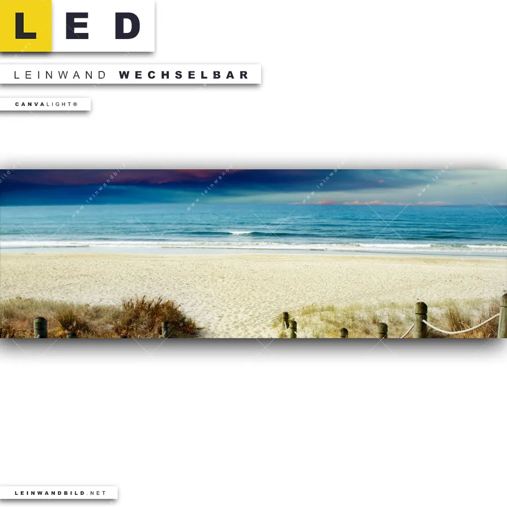 Du bist auf der Suche nach einem Landschaften, Strand - Meer LED Leinwandbild im Panorama-Format? Begriffe wie Meer, Sonnenuntergang, Strand, Treppe, Weg, Herbst haben Dich auf der Suche nach Deinem neuen XXL LED Wandbild mit wechselbarer Leinwand inspiriert? Farben wie Blau, Orange, Beige dürfen auf Deinem neuen extra breiten Leinwand-LED-Bild nicht fehlen und Leuchtbilder im Natürlich - Realistisch Stil passen perfekt zu Deinem Einrichtungsstil?