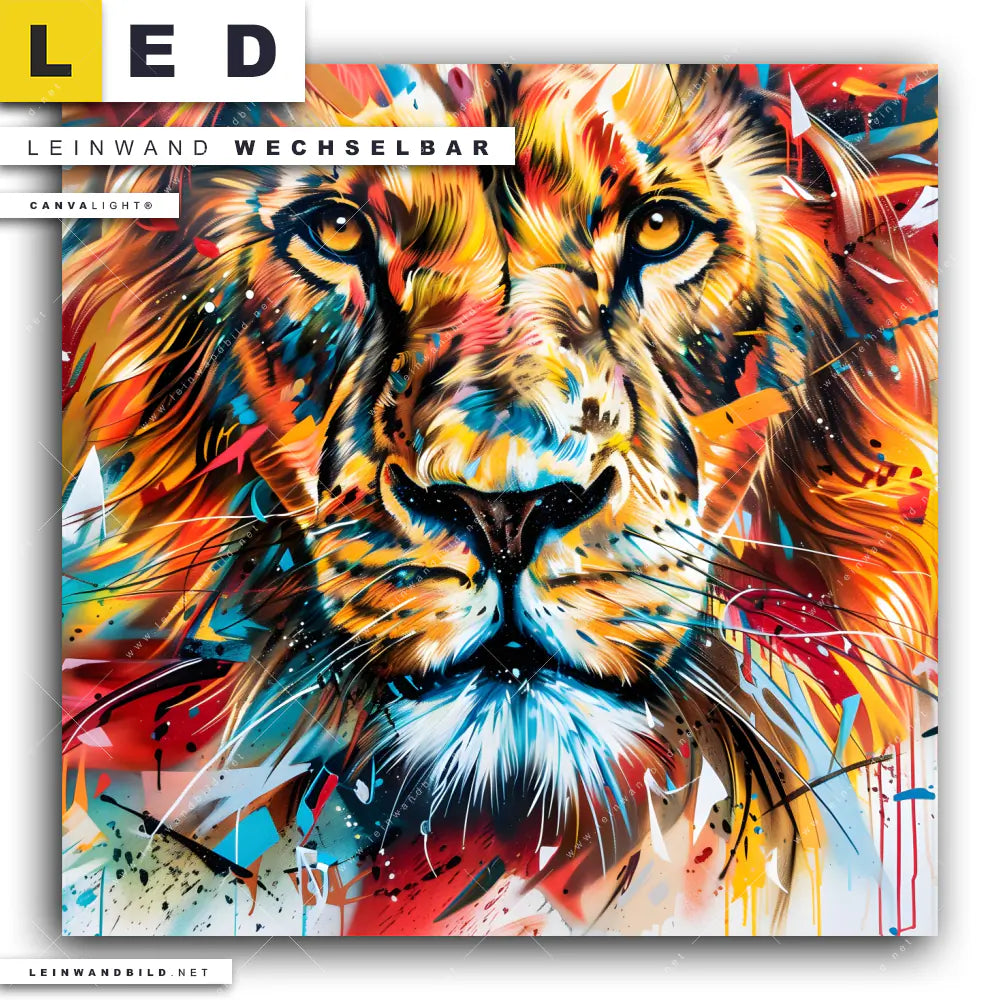 LED Leinwandbild Canvalight® TEX | Der Löwe - Urban Style | Quadrat