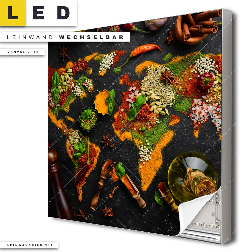LED Leinwandbild Canvalight® TEX | Die Weltkarte der Gewürze | Quadrat