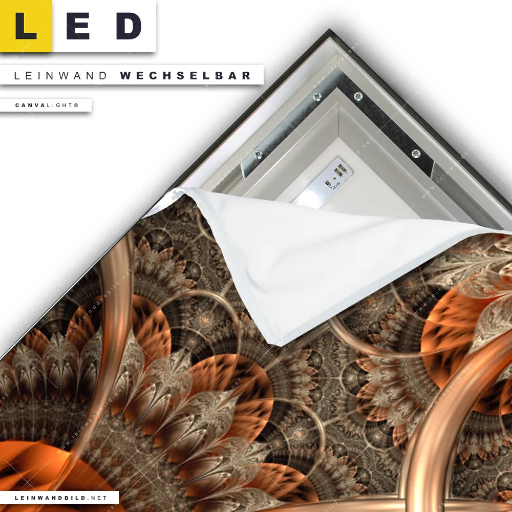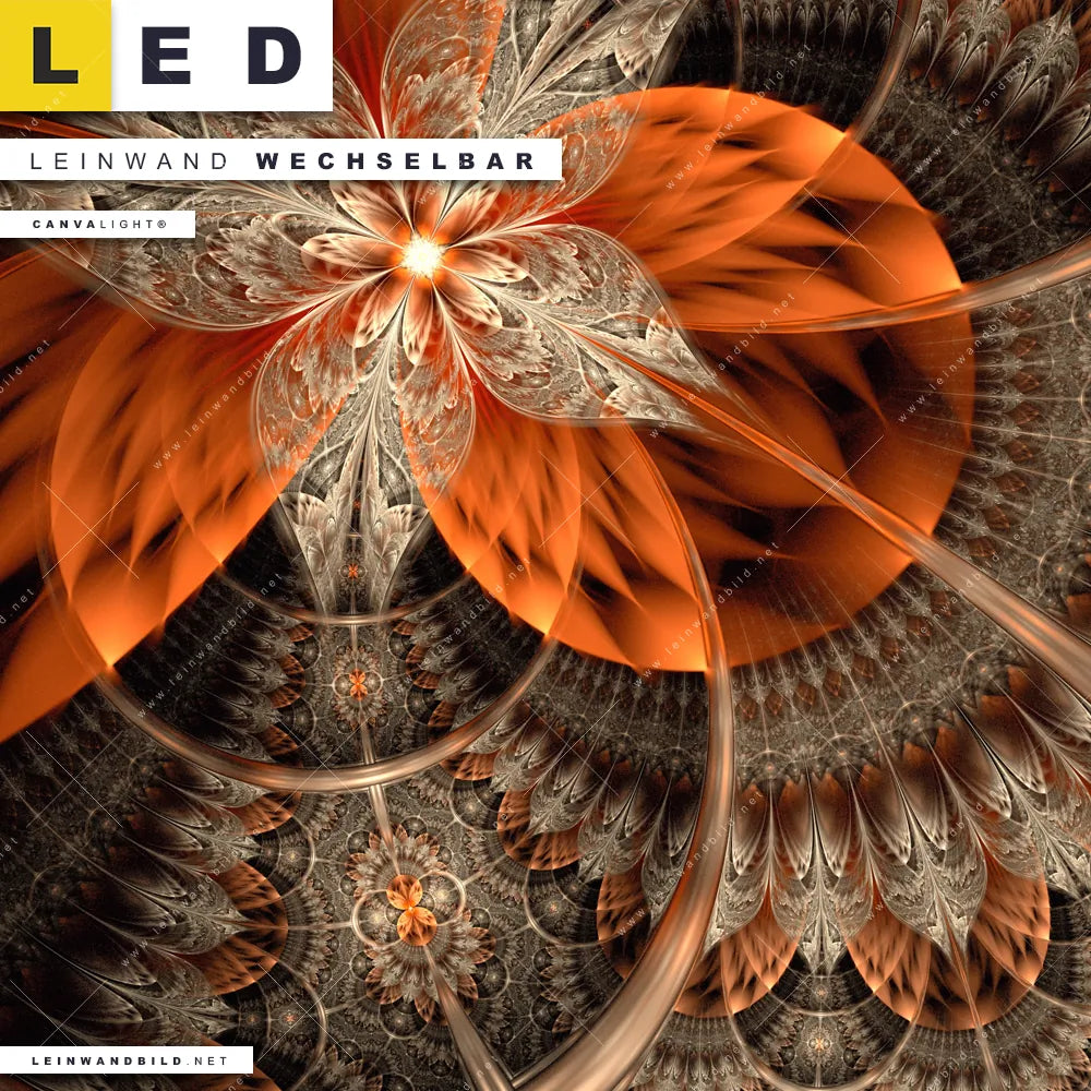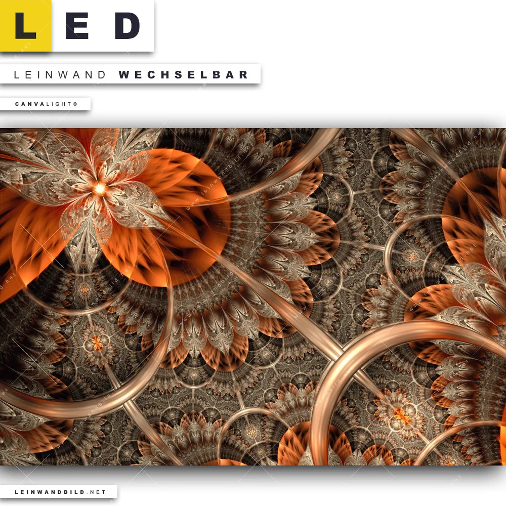 Du bist auf der Suche nach einem Muster - Texturen, Blumen - Botanik LED Leinwandbild im Querformat? Begriffe wie Blume, Blüte, Fraktal, Kunst, Wellen, Kurven, geschwungen, kreativ haben Dich auf der Suche nach Deinem neuen XXL LED Wandbild mit wechselbarer Leinwand inspiriert? Farben wie Beige, Orange, Braun, Rot, Silber dürfen auf Deinem neuen breiten Leinwand-LED-Bild nicht fehlen und Leuchtbilder im Abstrakt, Modern Art, Floral Stil passen perfekt zu Deinem Einrichtungsstil?