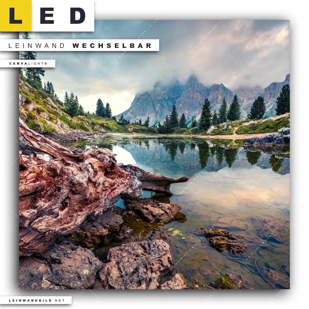 Du bist auf der Suche nach einem Landschaften LED Leinwandbild im Quadratischen Format? Begriffe wie Berge, Bergsee, See, Wasserspiegelung, Gebirge, Dolomiten, Italien, Wanderwege, wandern, Wasser, Natur haben Dich auf der Suche nach Deinem neuen XXL LED Wandbild mit wechselbarer Leinwand inspiriert? Farben wie Grün, Braun, Blau, Hellblau dürfen auf Deinem neuen Leinwand-LED-Bild nicht fehlen und Leuchtbilder im Natürlich - Realistisch Stil passen perfekt zu Deinem Einrichtungsstil?