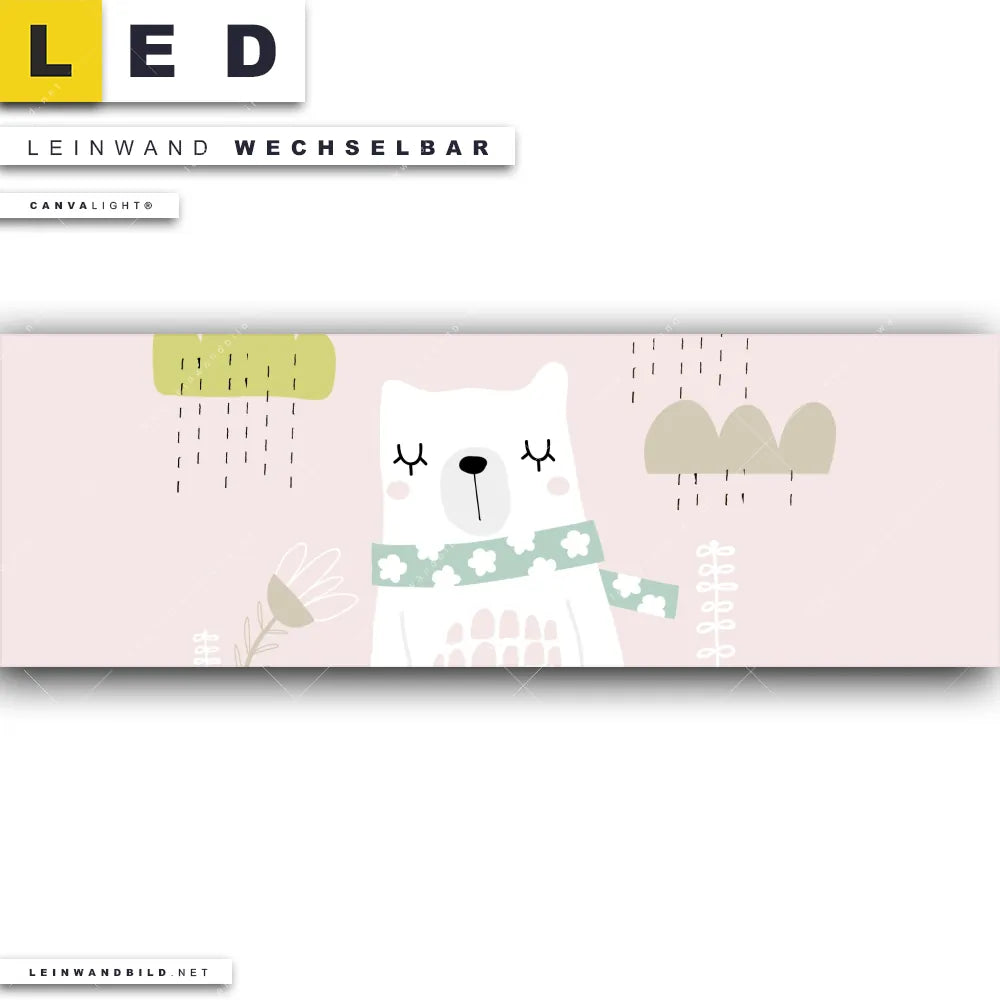 Du bist auf der Suche nach einem Tierwelt LED Leinwandbild im Panorama-Format? Begriffe wie Kinder, Tiere, Kunst, Freunde, Nachtlicht, Eisbär, träumen haben Dich auf der Suche nach Deinem neuen XXL LED Wandbild mit wechselbarer Leinwand inspiriert? Farben wie Rosa, Grün, Blau dürfen auf Deinem neuen extra breiten Leinwand-LED-Bild nicht fehlen und Leuchtbilder im Modern Art Stil passen perfekt zu Deinem Einrichtungsstil?