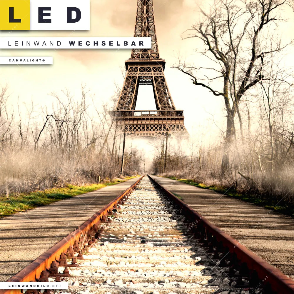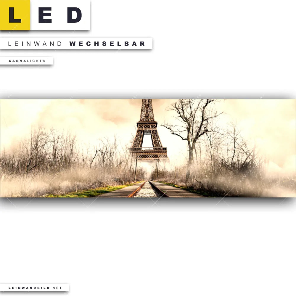 LED Leinwandbild Canvalight® TEX | Eifelturm am Abstellgleis | Panorama