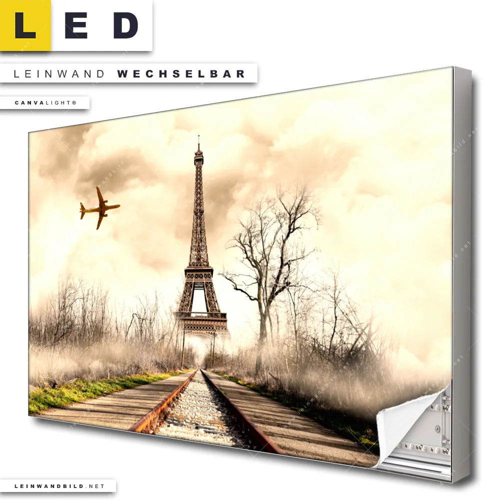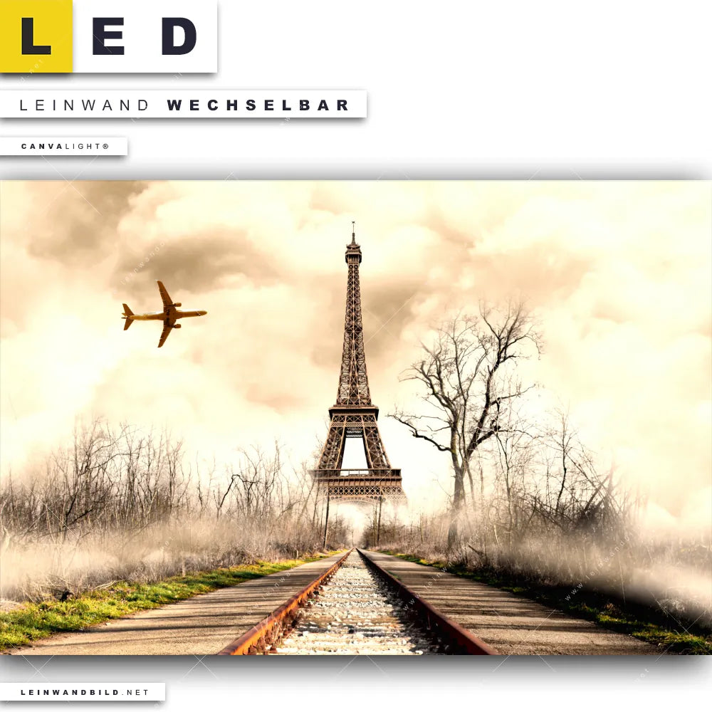 Du bist auf der Suche nach einem Landschaften LED Leinwandbild im Querformat? Begriffe wie Mixed Media, Sehenswürdigkeiten, Frankreich, Paris, Eifelturm, Landschaft, Bahngleis, Gleis, Flugzeug haben Dich auf der Suche nach Deinem neuen XXL LED Wandbild mit wechselbarer Leinwand inspiriert? Farben wie Beige, Braun, Gelb dürfen auf Deinem neuen breiten Leinwand-LED-Bild nicht fehlen und Leuchtbilder im Mixed Media Stil passen perfekt zu Deinem Einrichtungsstil?