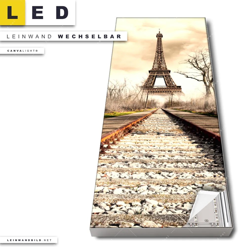 LED Leinwandbild Canvalight® TEX | Eifelturm am Abstellgleis | Schmal