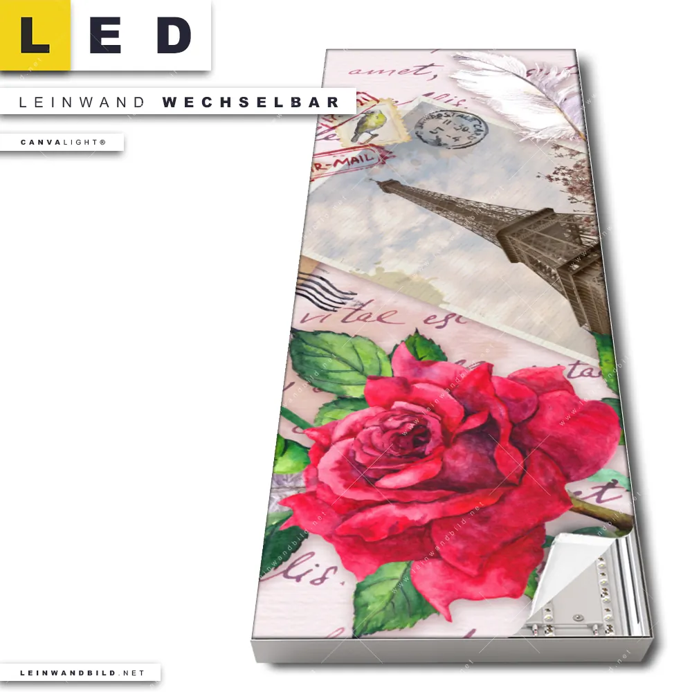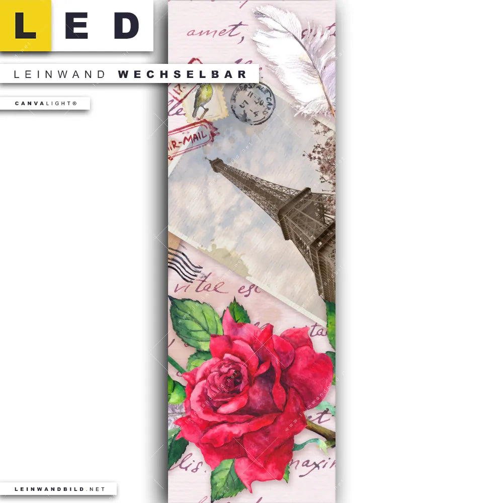 LED Leinwandbild Canvalight® TEX | Eifelturm & Rosen | Schmal