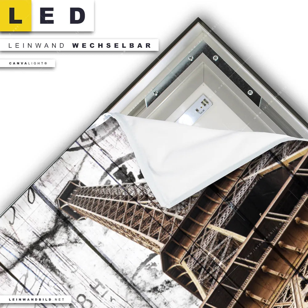 Du konfigurierst Dein individuelles LED Leinwandbild Canvalight® TEX | Eifelturm Shabby Stil | Hochformat und wir produzieren es NEU für Dich. Unsere Architektur - Gebäude LED Bilder mit wechselbarer Textil-Leinwand sind KEINE Lagerware. Du bist Dir unsicher, welches Motiv oder Format das richtige für dein individuelles Canvalight® Leuchtbild ist, dann helfen wir dir gerne weiter und beraten dich!