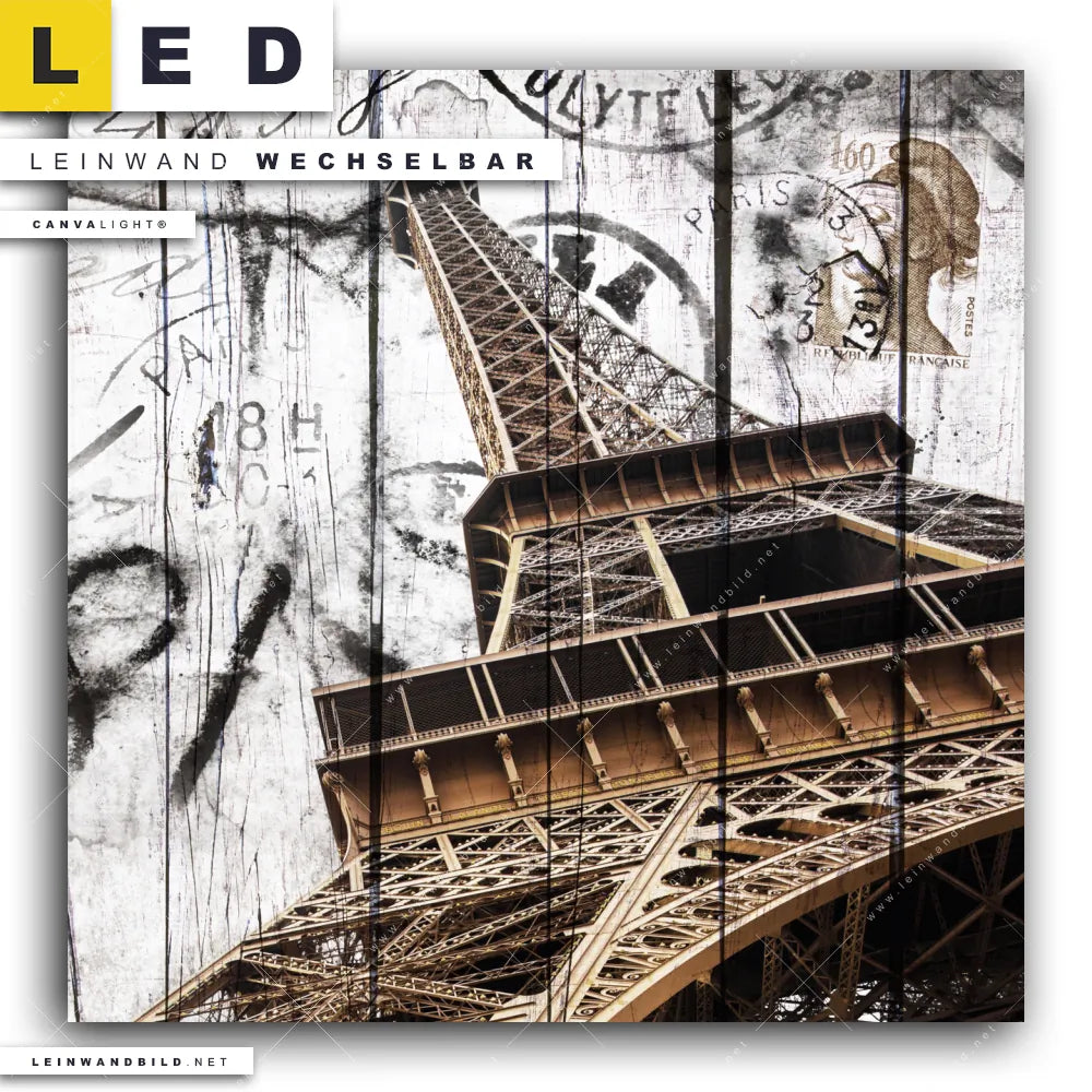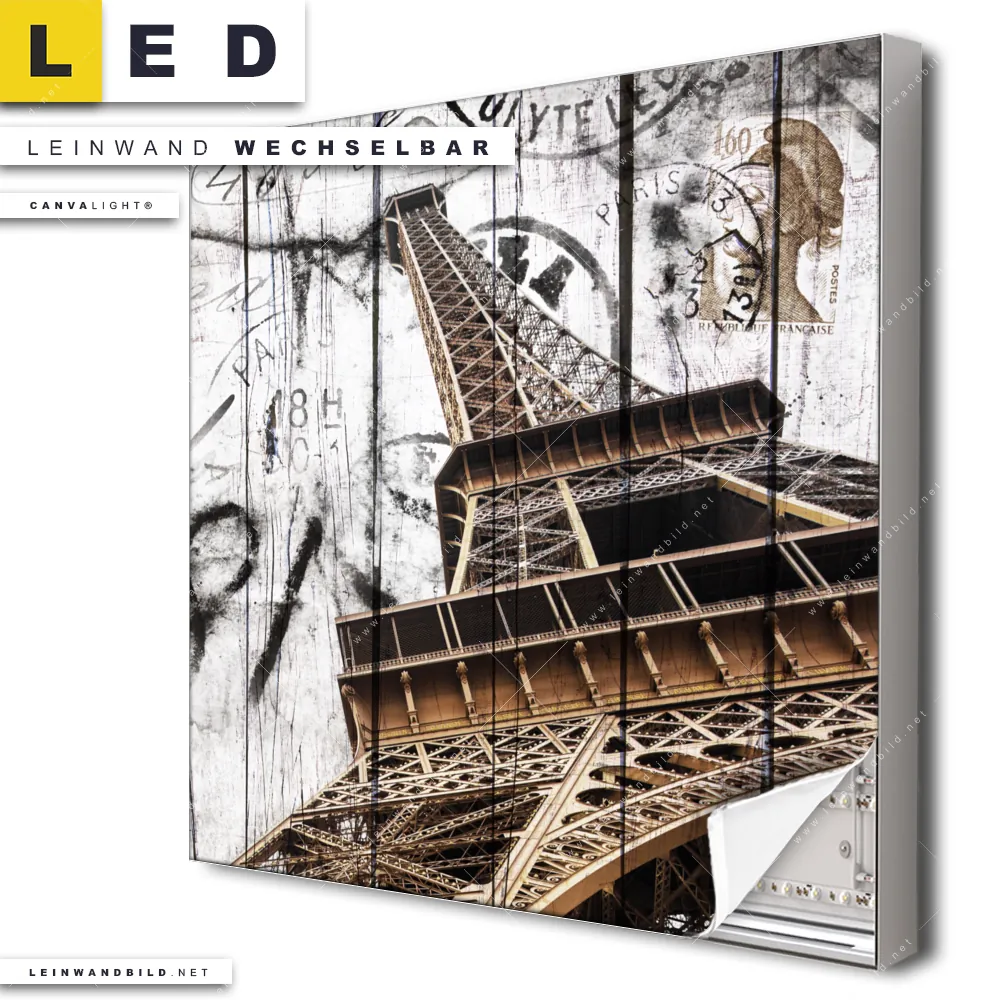 LED Leinwandbild Canvalight® TEX | Eifelturm Shabby Stil | Quadrat