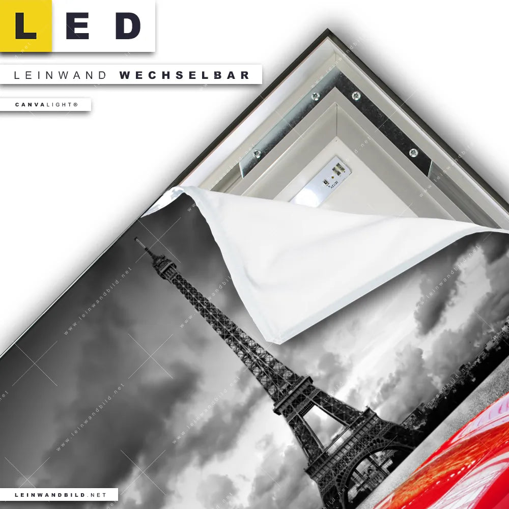 Du konfigurierst Dein individuelles LED Leinwandbild Canvalight® TEX | Eiffelturm & Rotes Auto | Quadrat und wir produzieren es NEU für Dich. Unsere Städte - Skylines, Fahrzeuge LED Bilder mit wechselbarer Textil-Leinwand sind KEINE Lagerware. Du bist Dir unsicher, welches Motiv oder Format das richtige für dein individuelles Canvalight® Leuchtbild ist, dann helfen wir dir gerne weiter und beraten dich!