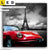 LED Leinwandbild Canvalight® TEX | Eiffelturm & Rotes Auto | Quadrat