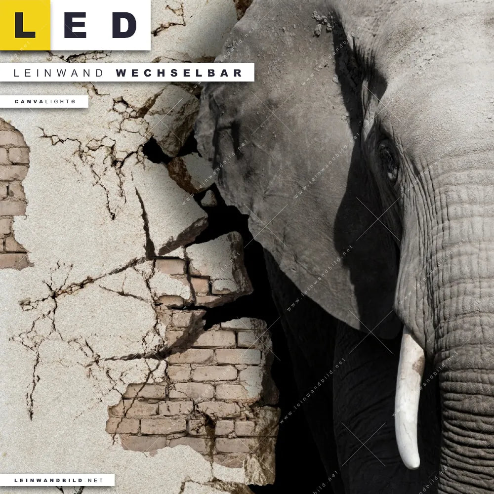Du bist auf der Suche nach einem Tierwelt LED Leinwandbild im Querformat? Begriffe wie Elefant, Afrika, Safari, Mauer, Durchbruch, Stärke haben Dich auf der Suche nach Deinem neuen XXL LED Wandbild mit wechselbarer Leinwand inspiriert? Farben wie Beige, Braun dürfen auf Deinem neuen breiten Leinwand-LED-Bild nicht fehlen und Leuchtbilder im Modern Art, Mixed Media Stil passen perfekt zu Deinem Einrichtungsstil?