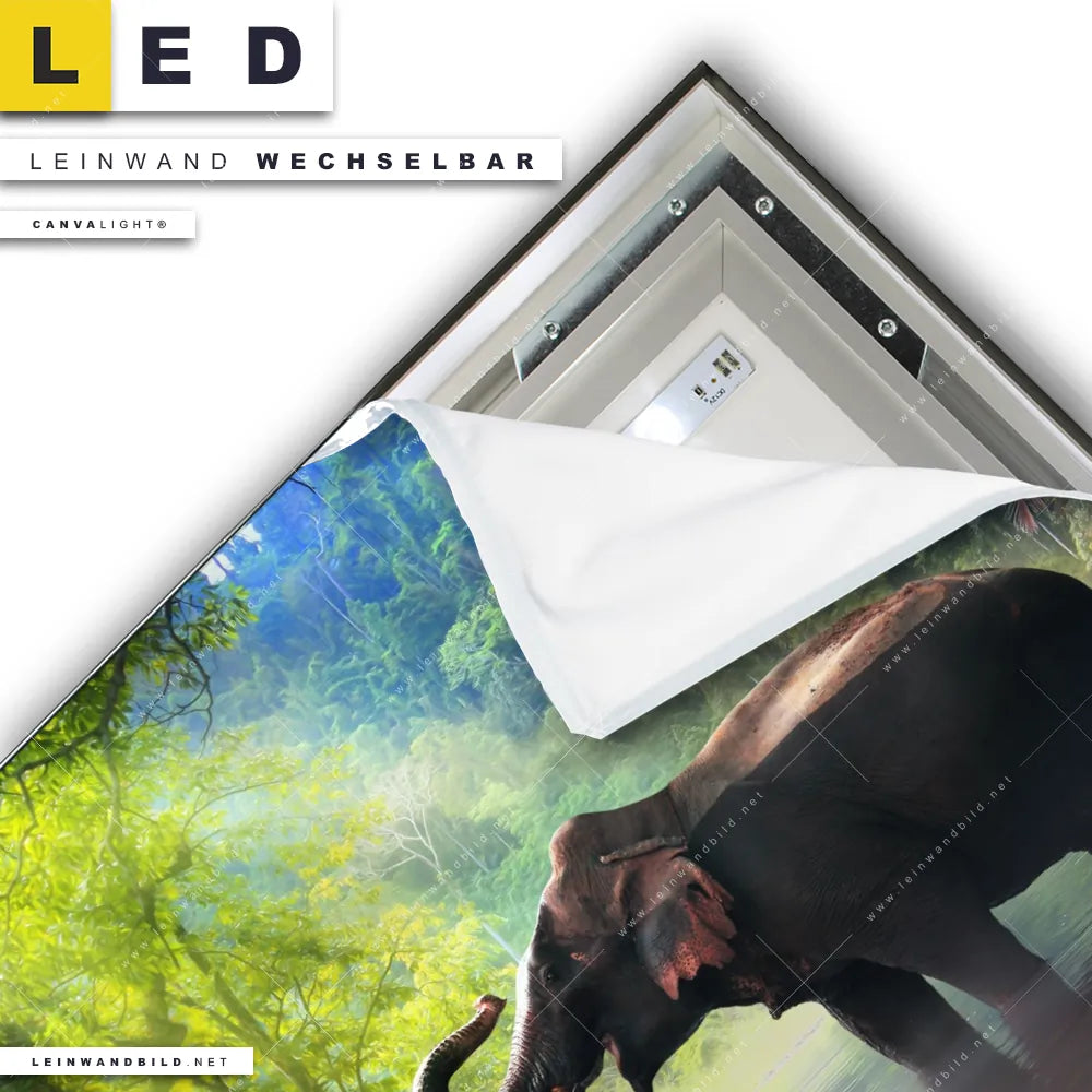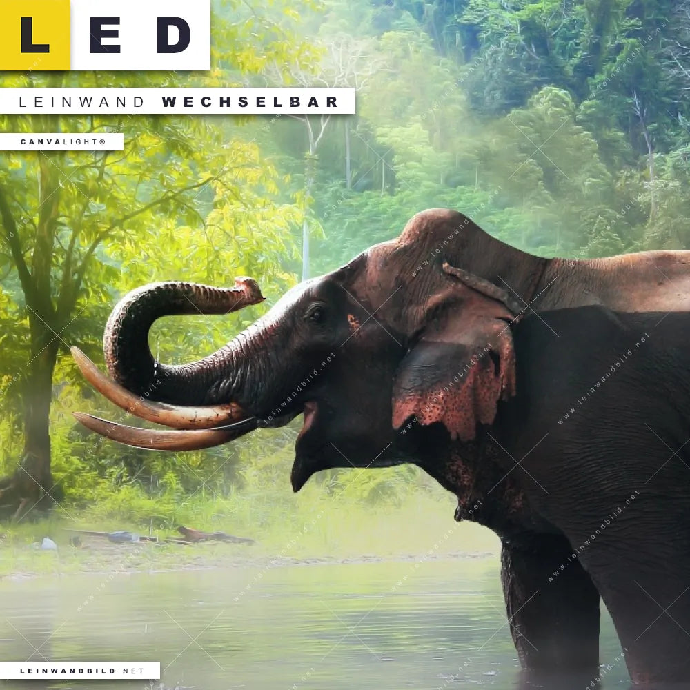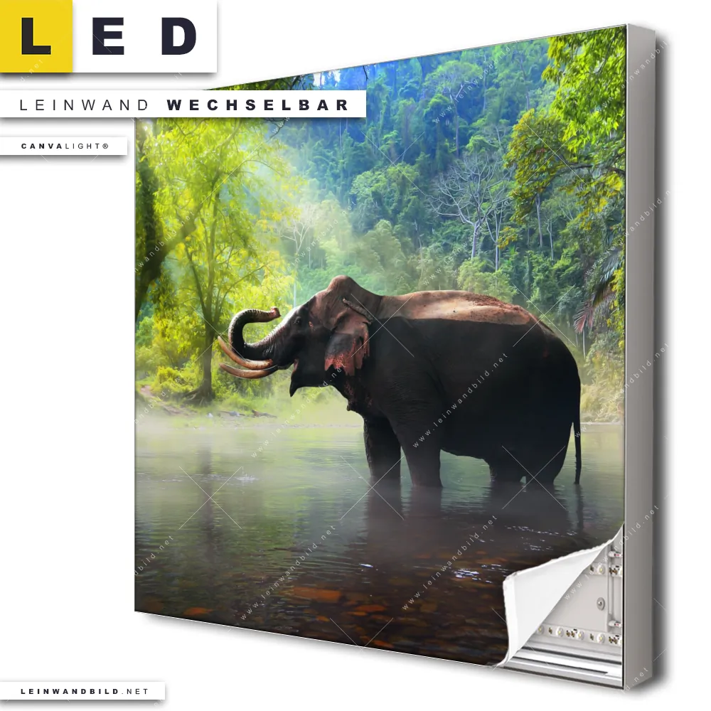 Du bist auf der Suche nach einem Tierwelt LED Leinwandbild im Quadratischen Format? Begriffe wie Elefant, wild, Safari, Dschungel, Wasser, Sonnenstrahlen, Afrika haben Dich auf der Suche nach Deinem neuen XXL LED Wandbild mit wechselbarer Leinwand inspiriert? Farben wie Grün, Braun dürfen auf Deinem neuen Leinwand-LED-Bild nicht fehlen und Leuchtbilder im Natürlich - Realistisch Stil passen perfekt zu Deinem Einrichtungsstil?