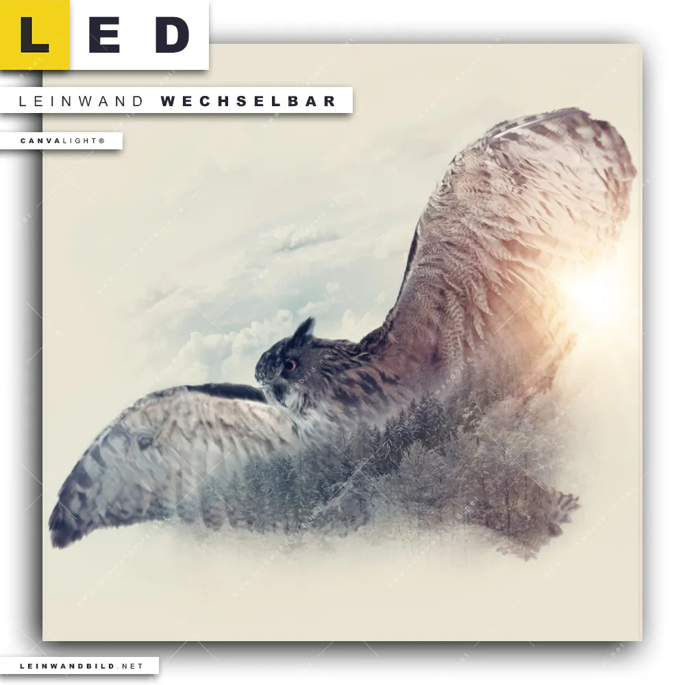 Du bist auf der Suche nach einem Tierwelt LED Leinwandbild im Quadratischen Format? Begriffe wie Vogel, Eule, Wald, Doppelbelichtung, Natur, skandinavisch, Bäume haben Dich auf der Suche nach Deinem neuen XXL LED Wandbild mit wechselbarer Leinwand inspiriert? Farben wie Beige, Braun dürfen auf Deinem neuen Leinwand-LED-Bild nicht fehlen und Leuchtbilder im Abstrakt, Modern Art, Mixed Media Stil passen perfekt zu Deinem Einrichtungsstil?